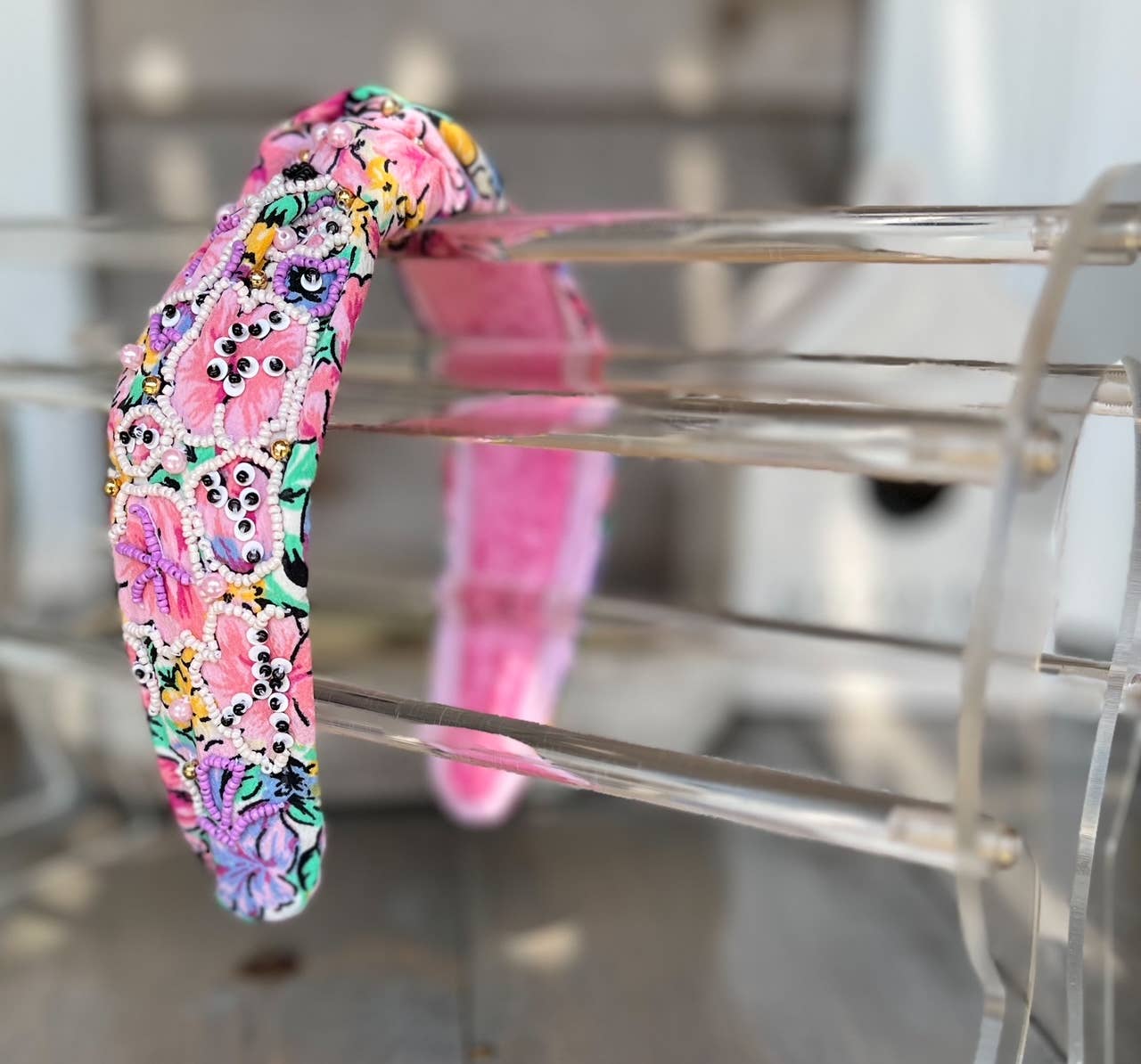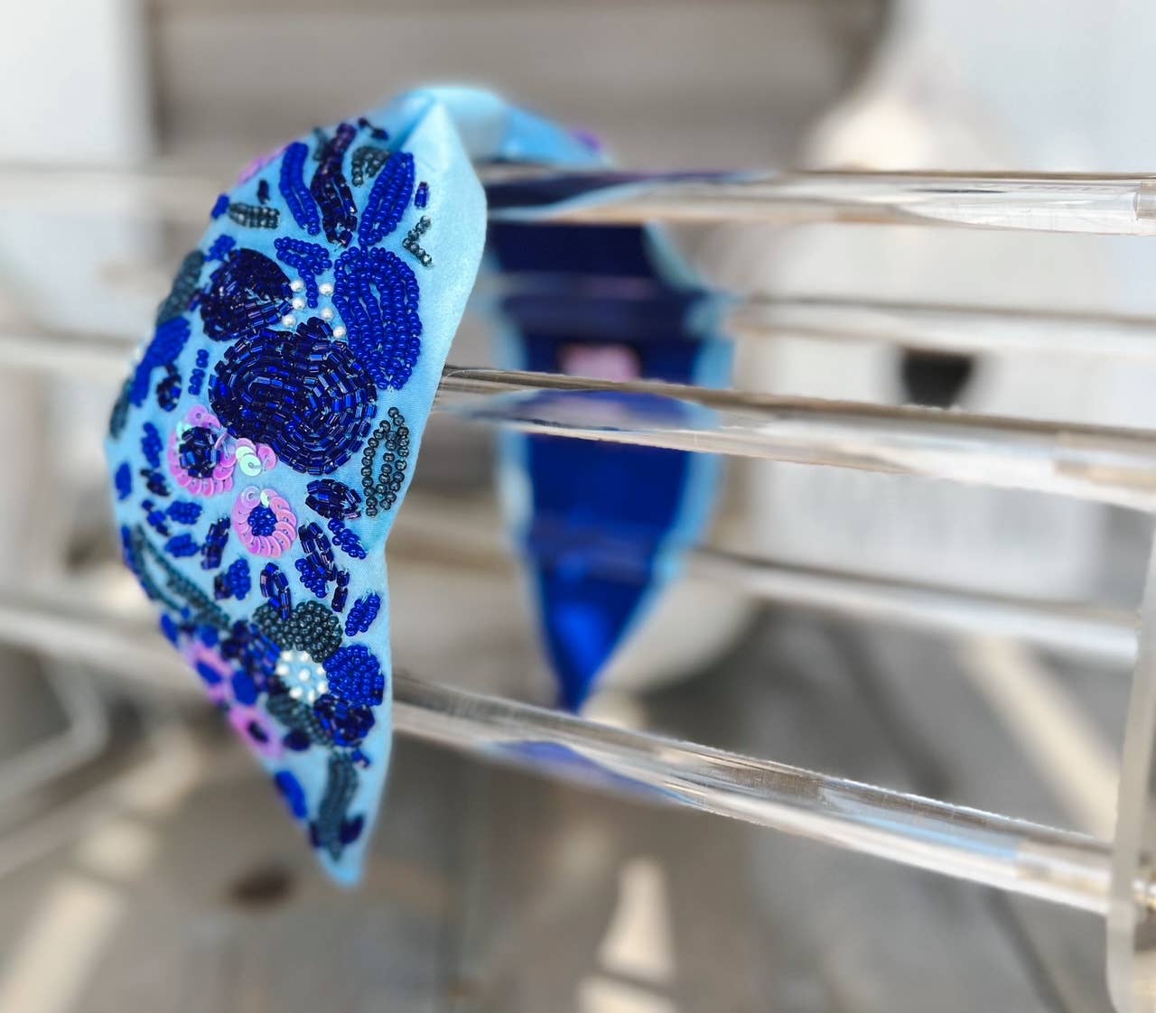 Diadema Lilly Aqua con estampado floral floral y cuentas en forma de semillas al por mayor