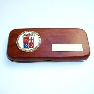 Este estuche de almacenamiento de bolígrafos de madera de cerezo de varios niveles realza cualquier escritorio o espacio de oficina. Cuenta con 3 niveles forrados de terciopelo, incluyendo una bandeja superior y 2 cajones, para guardar una colección valiosa de bolígrafos. La tapa de cristal permite exhibir tus bolígrafos favoritos protegiéndolos de daños. Un regalo ideal para el Día del Padre o para tu jefe. Características: - Capacidad para 36 bolígrafos - Forro de terciopelo - 2 cajones de almacenamiento - Tapa de cristal - Color marrón - Modelo # BB714BRW