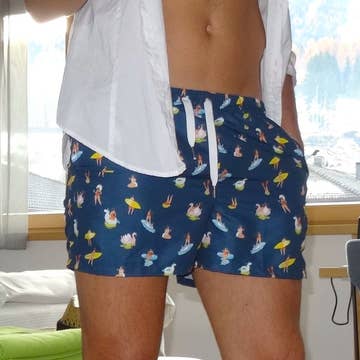 Mi padre es el más guay... Bañador a juego para padre e hijo, regalo perfecto para papá o hijo. Pantalones cortos híbridos versátiles para el patio de recreo y la playa. Estos divertidos estampados están confeccionados con un tejido elástico en 4 direcciones de secado rápido y un exclusivo tirador de cremallera para gafas de sol de Mosmann. Forro interno de malla supersuave, cintura elástica con cordón y bolsillos forrados de malla con drenaje automático. Corte europeo para un look a medida.