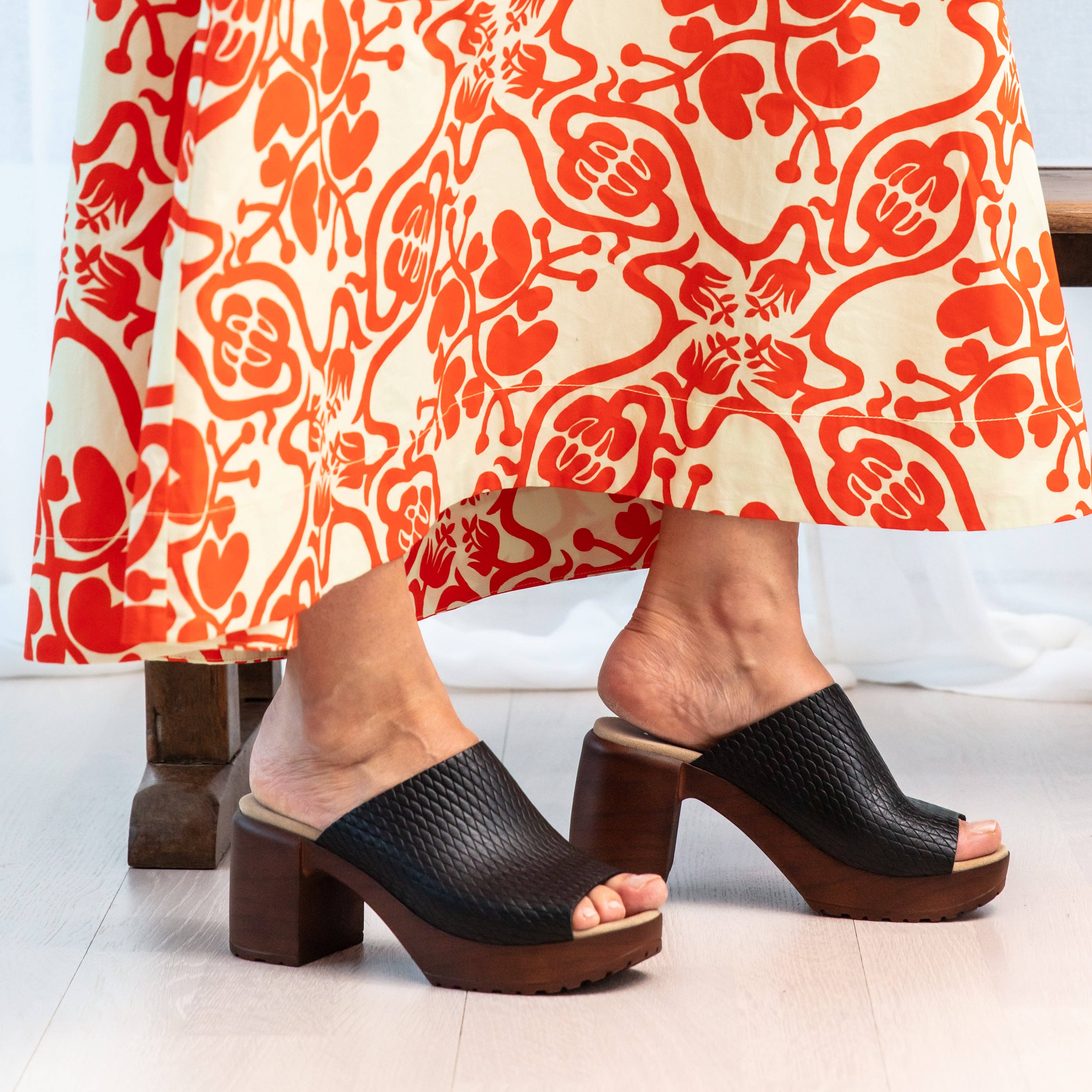 Es un poco de Rock 'n Roll, un poco de la vieja escuela y un montón de clase. Rosas exuberantes están talladas a mano alrededor de la base de este zapato. Una calavera altamente detallada asoma a través de una abertura en la parte trasera. ¡Este nuevo estilo de LouLou von Hochtritt es verdaderamente único! Detalles, detalles... Tacón de madera ligero tallado a mano de 3.5". La suave correa de la puntera de ante negro y piel de leopardo está forrada con suave cuero negro. La correa del tobillo es de cuero negro forrada con suave cuero negro. La parte superior está acolchada con vinilo negro. Goma antideslizante suave y duradera en la parte delantera y trasera del zapato para mantenerte de pie. ¿Cómo se ajustan? ~Este estilo se ajusta muy bien a las tallas de EE. UU. ~Si tus pies son muy estrechos, por favor elige una talla menos. Si tus pies son de estrechos a promedio, pide tu talla habitual. Si tus pies son de promedio a anchos, por favor elige una talla más. ~El tacón de madera está bellamente tallado a mano y es resistente, pero la madera en sí es sorprendentemente ligera. La base está pintada con varias capas de pintura y luego varias capas de laca para asegurar que el color se mantenga. ~La correa de la puntera está hecha de cuero con un forro de vinilo suave. Rígida pero flexible, esta correa no se estirará mucho con el uso. ~La correa del tobillo está hecha de cuero con un forro de vinilo suave. Rígida pero flexible, esta correa de tobillo ayudará a mantener tu pie en su lugar. ~La plantilla de vinilo está acolchada con 3 capas de relleno para mayor comodidad. ~Cada par de zapatos LouLou von Hochtritt viene con una bolsa de polvo de satén crepé para su almacenamiento.