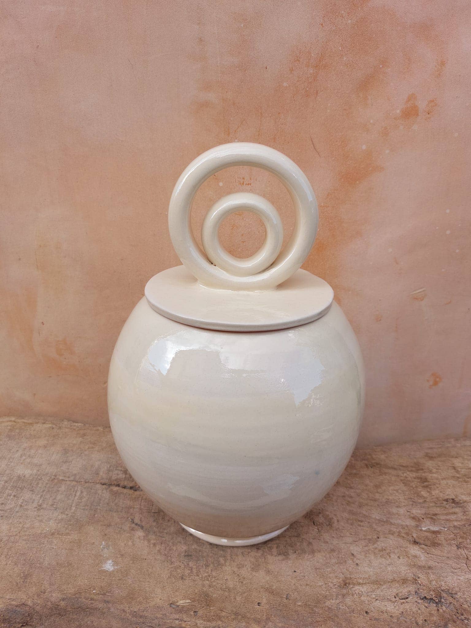 Aceitera tradicional, hecha y pintada a mano. Los tonos de color varían ligeramente debido a que cada pieza se sumerge a mano. Cómo se hacía originalmente. Esto hace que cada pieza sea única. El aceite o vinagre se introduce por la parte de arriba, donde hay un orificio. Capacidad 400 ml. 12x16x23H CM. Apto para el lavavajillas. Para su uso, recomendamos poner un plato bajo la pieza. Utilizamos materias primas ecológicas y sostenibles, con las que aseguramos el cuidado del medio ambiente. Los envíos se realizan con cartón reutilizado, que proviene de otro negocio local.