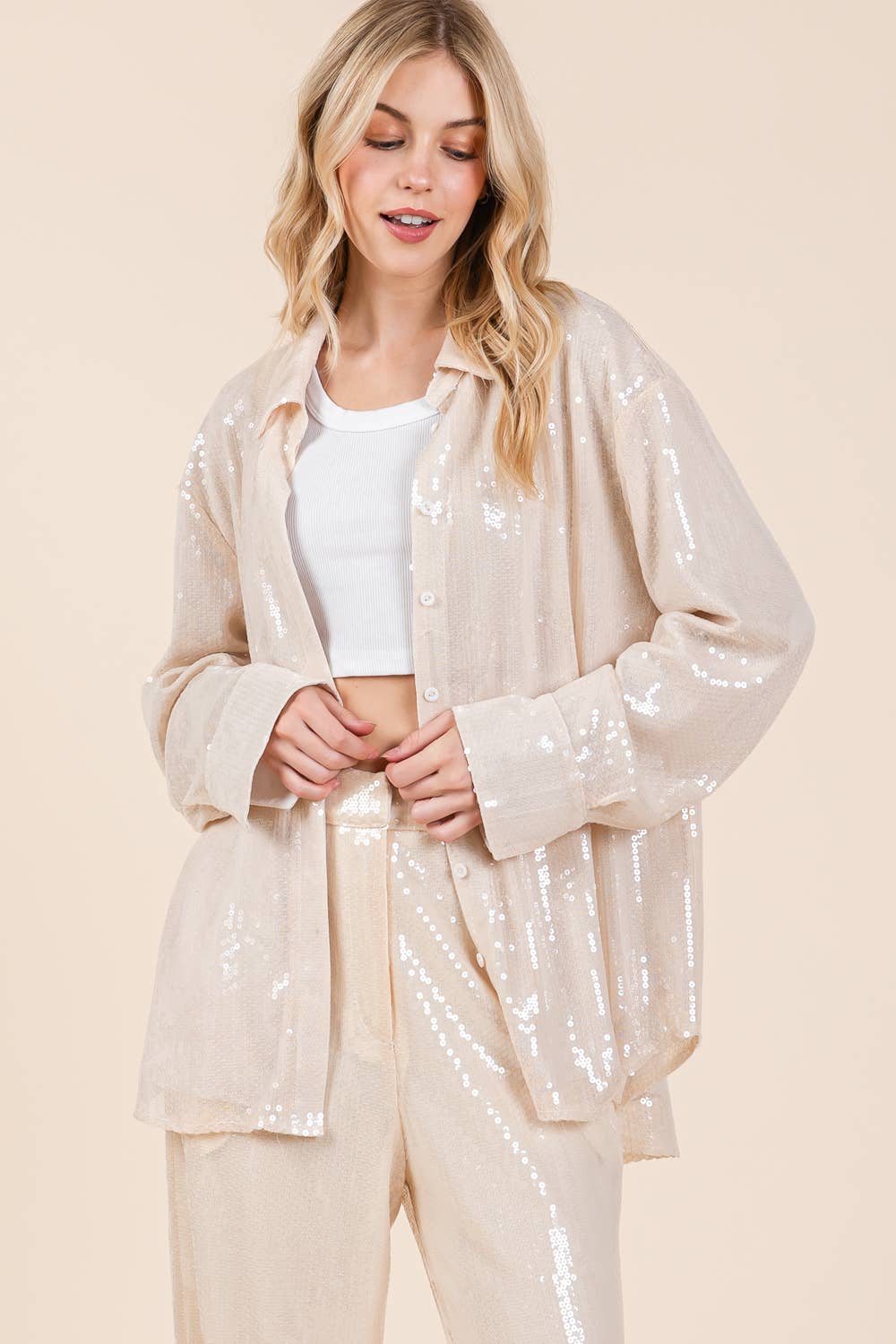 Camisa extragrande con lentejuelas, MT51078