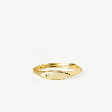 Material: oro sumergido con nuestro exclusivo chapado en oro de 14k y una superficie de nácar. Tamaños: 6, 7, 8 Hecho a mano en el sur de California
