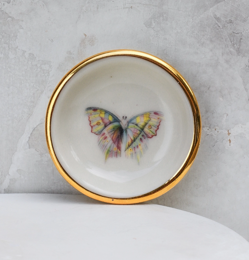 ¡Descubre el lugar perfecto para guardar tus tesoros con este encantador plato de baratijas de porcelana blanca! Ideales como portajoyas o pequeños comodines, estos platos de barro añaden un toque de elegancia a cualquier espacio. Adornados con un borde de oro de 22 quilates pintado a mano, son un complemento elegante para la encimera o mesita de noche del baño. Cada abalorio es único y cuenta con un esmalte blanco de porcelana transparente que resalta dos corazones dorados. Debido a su naturaleza hecha a mano, cada plato mide aproximadamente 3 pulgadas de ancho.
