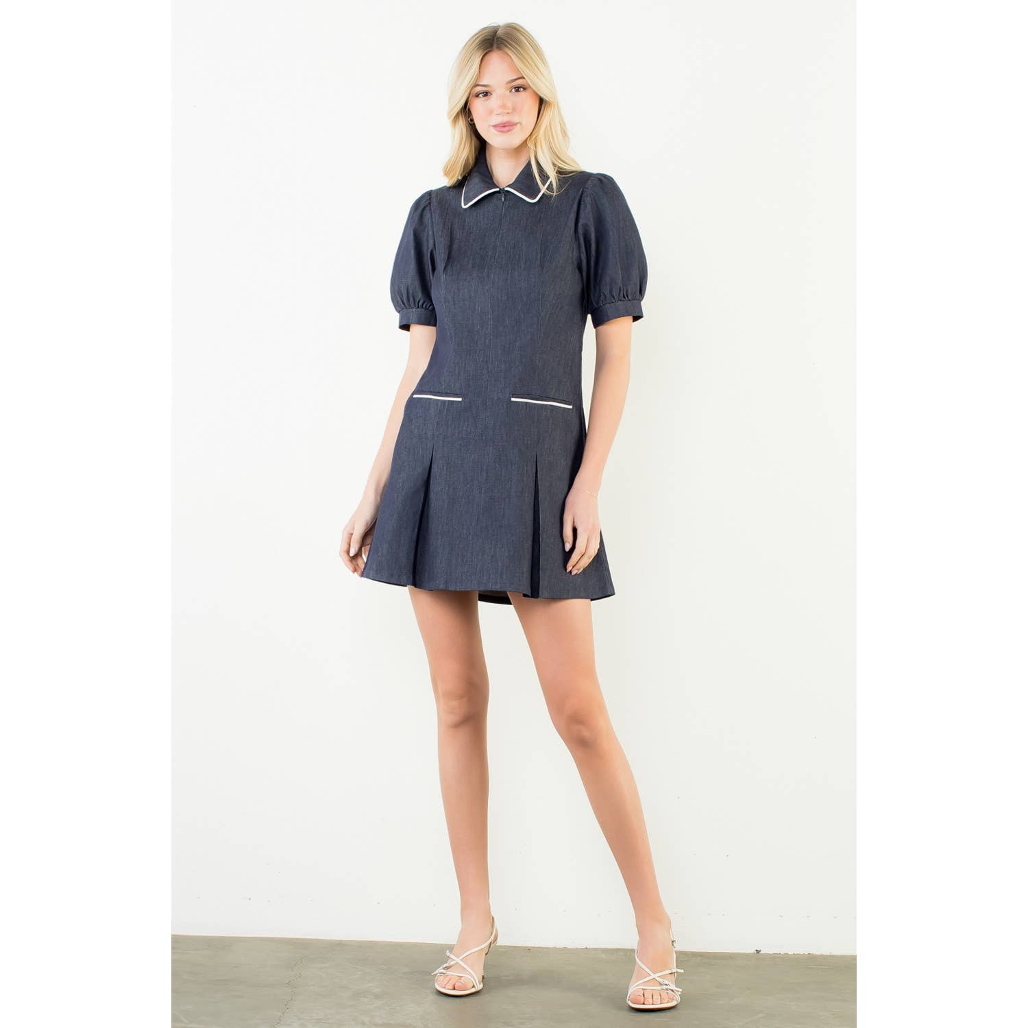 Vestido Texturizado Bordado con Mangas Abullonadas al por mayor