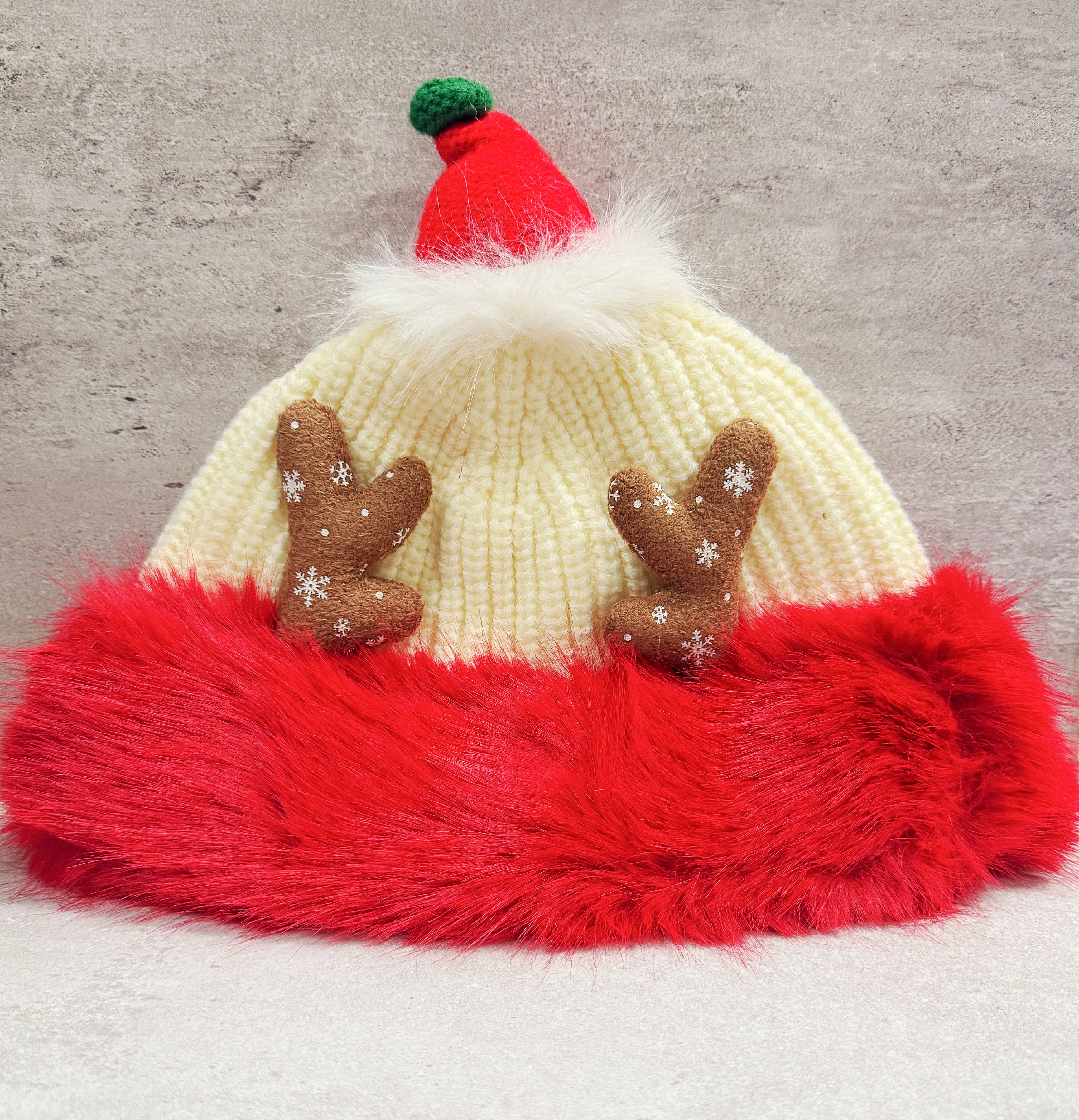 Gorro Navideño de Punto Grueso estilo Santa Claus, Beanie Holgado de Lana