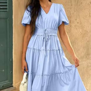 Atención: Algunos colores mostrados en el sitio web pueden no estar disponibles para la selección, pero podemos personalizarlos para usted. Si tiene un color específico en mente, también podemos personalizarlo. Para más información, por favor contacte a nuestro equipo de atención al cliente. Material: 65% Poliéster 35% Algodón Características: Vestido camisero ajustado con cuello redondo y manga corta anudada Ocasión: Casual/Diario/Aire libre/Vacaciones/Festivo/Escuela/Salir. Estilo # EODS510127