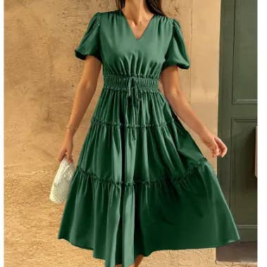 SKU: LQ211S313260303 Hecho en China Ajuste: Curvy y Júnior Cuello: Redondo Estampado: Liso Estilo de vestido: Ajustado en la parte de arriba y suelto en la parte de abajo y Con corte evasé Estilo: Clásico y Informal Instrucciones de cuidado: Para lavar a mano Largo de faldas y vestidos: Midi Longitud de manga: Manga corta Ocasión: Fiesta de día y Para todos los días Tejido: 65% poliéster 35% algodón Tema por ocasión: Para todos los días Temporada: Primavera-verano Peso: 362,87 g (12,8 oz) Dimensiones: 20,3 x 7,6 x 1,3 cm (8 x 3 x 0,5 in) Embalaje: Reciclable