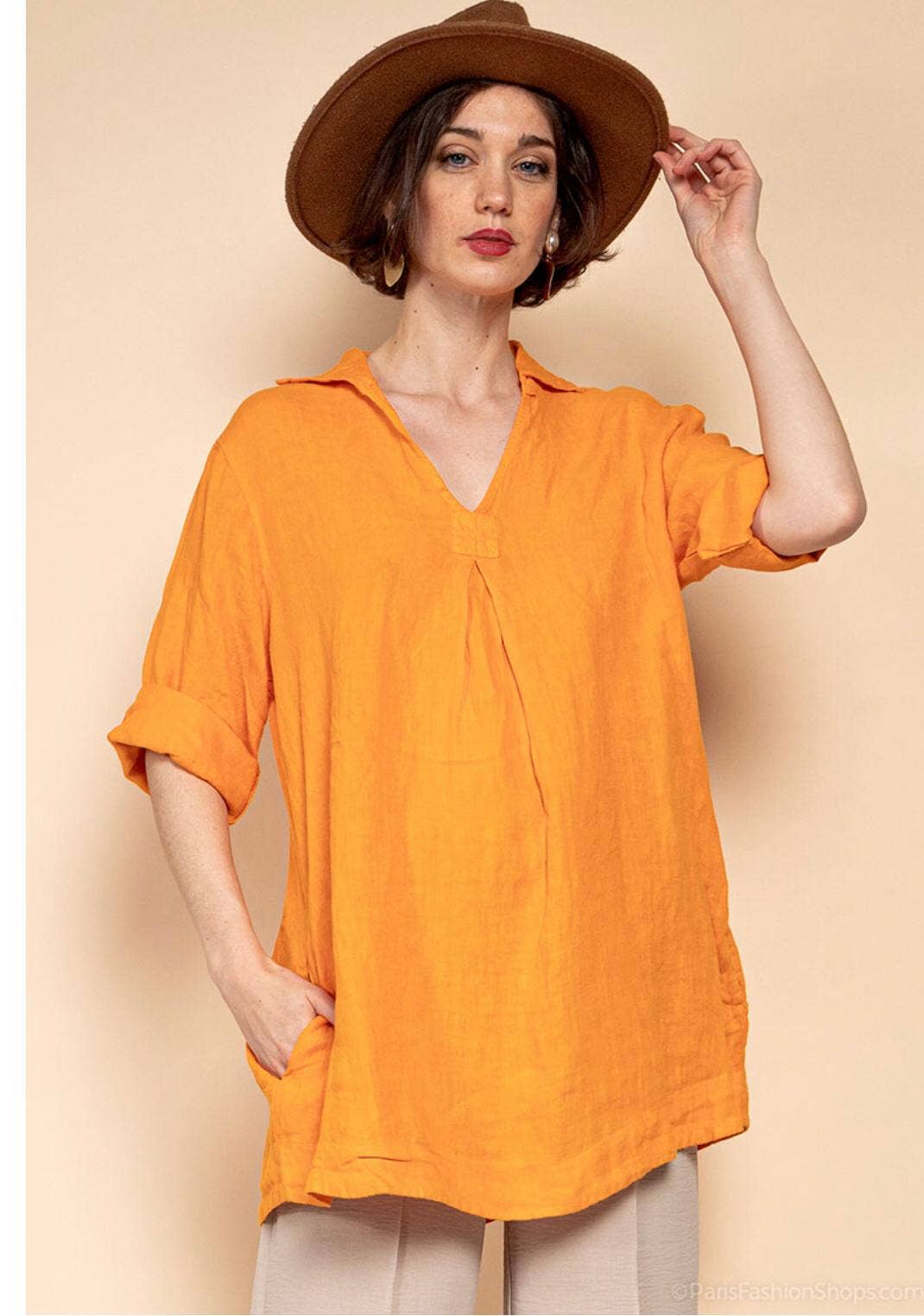 Túnica amplia de lino 68369 flora 100% TÚNICA DE LINO al por mayor