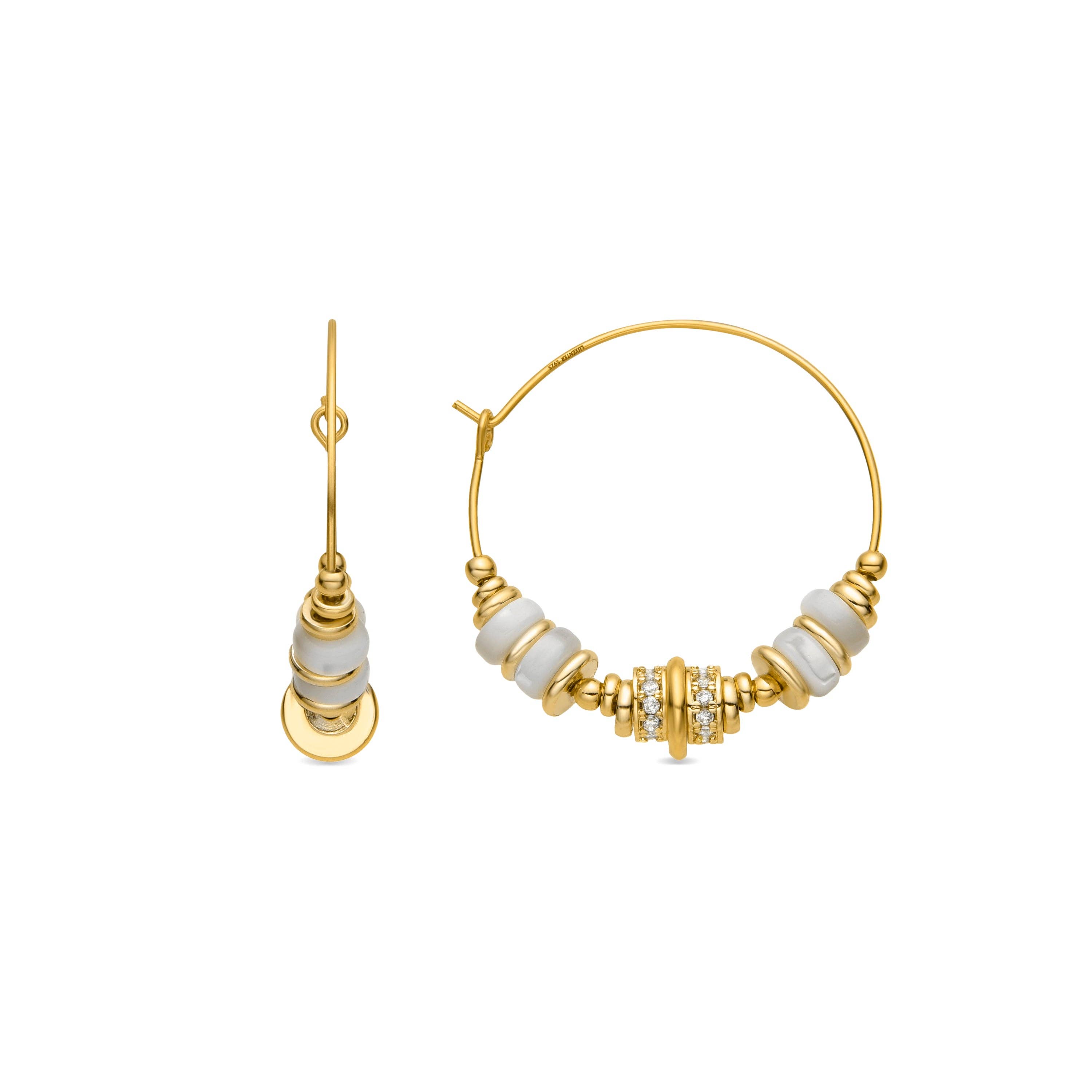 ● Aro de 1”, pieza de porcelana de ¾” ● Herrajes libres de níquel, rellenos de oro de 14K ● Porcelana cocida al horno ● Lustre de oro de 22K ● Hecho a mano Cómodos, ligeros y con un aspecto único y moderno. Piezas de porcelana delgadas, redondas y texturizadas con lustre dorado cuelgan libremente de aros de 1”. Mientras que la parte trasera es de porcelana blanca sin tratar, la superficie texturizada y dorada de las partes frontales refleja la luz de manera hermosa. Debido a que cada par es hecho a mano y único, la forma, tamaño y patrón del producto que reciba puede variar ligeramente de lo que se muestra aquí.