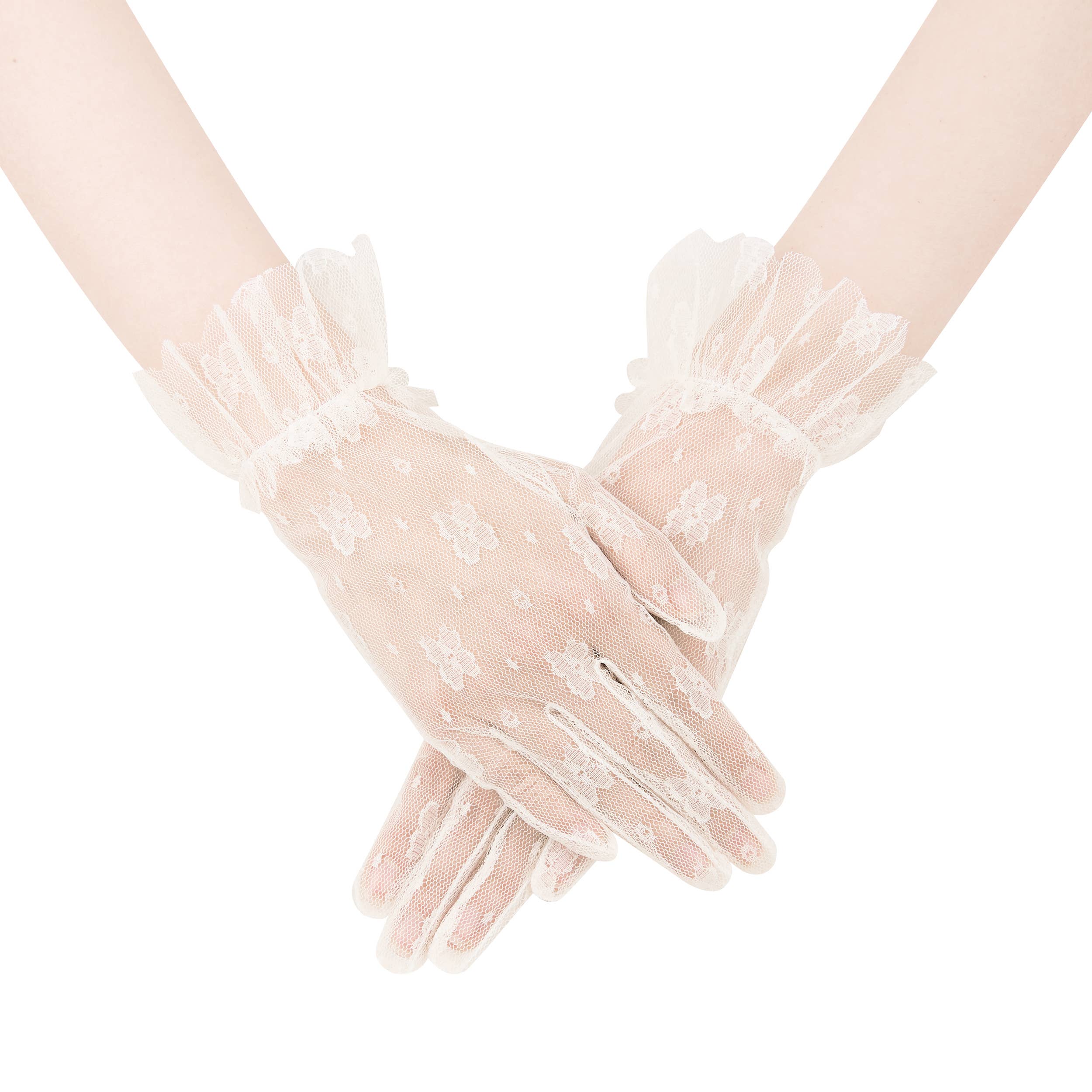 Guantes de encaje transparente de nailon marfil | Guantes de boda blancos
