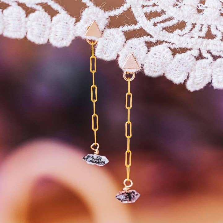 Este anuncio es para un par de hermosos pendientes de gancho francés de cadena con brillantes diamantes Herkimer. Estos pendientes son un magnífico regalo para la mujer de moda y boho de tu vida | Acerca de la joyería | Los pendientes están hechos de cadena de plata de ley brillante y ganchos franceses | son delicados y delicados con muy buen acabado. Cadena fina y 2 cristales cada uno | Usted tiene la opción de conseguir los mismos pendientes en hermosa plata de ley, brillante y brillante relleno de oro de 14k o oro rosa de 14k relleno. Por favor, seleccione en la caja | Los pendientes están hechos a mano para usted y un poco diferentes debido a la naturaleza de los cristales | Instrucciones de cuidado | No se recomienda dormir, ducharse, nadar o hacer ejercicio con sus joyas artesanales | Mantener su collar fuera del agua ayudará a alargar la vida de la Joyería.