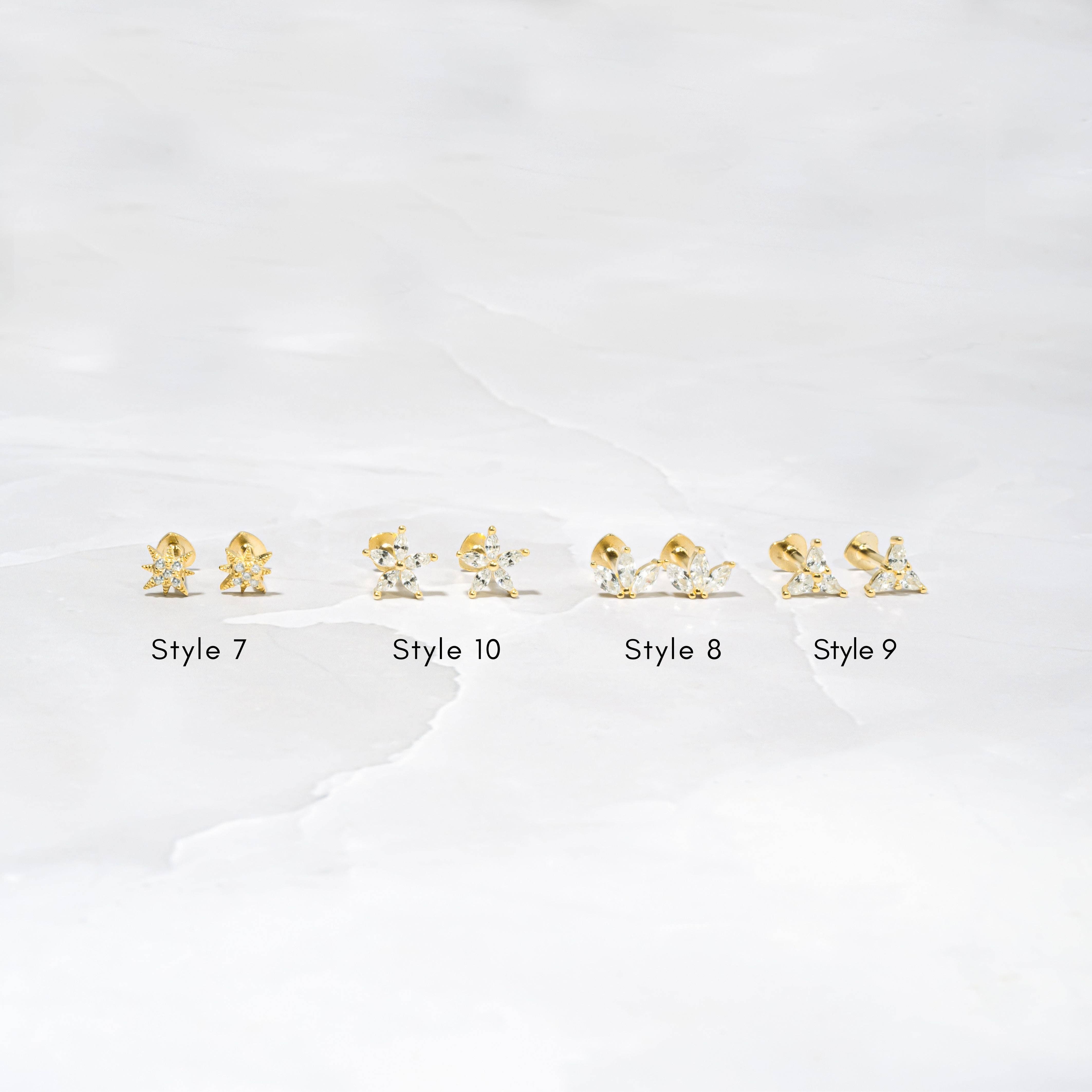 ¡Pendientes delicados con la parte trasera plana para la mejor colección de orejas! ¡Ideal para apilar! SE VENDE COMO UN SOLO ARETE*** * Hecho de plata de ley 925 * Revestimiento grueso de oro de 14 k * Longitud del poste de 7 mm * Calibre 16 * Los tamaños varían según el estilo * Sin níquel e hipoalergénico