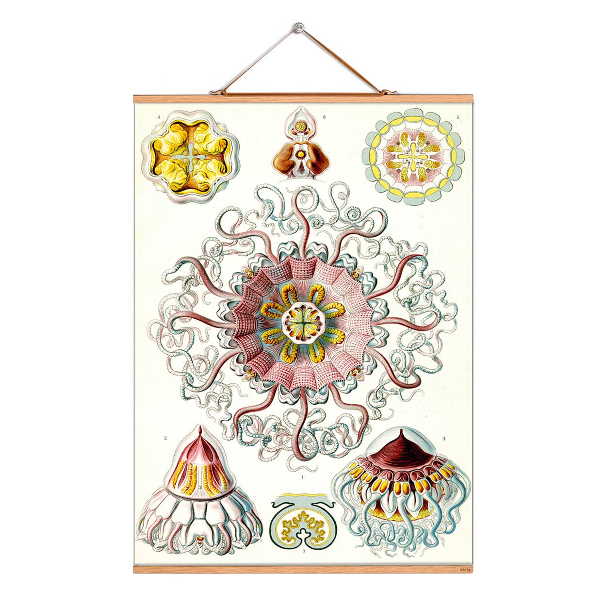 Impresión digital en tela de alta calidad de 220 g/m2 (impresión por sublimación, tela reciclada), Bastones de madera grabados con láser con cuello de cisne con colgador de cinta satin Hasta 70 años a prueba de luz (interiores), resistente a los arañazos, resistente al agua, impresión fotorrealista brillante, Certificado OEKO 1 al más alto nivel, sin disolventes. Producido con electricidad 100% verde. Hecho a mano con amor en Berlín.
