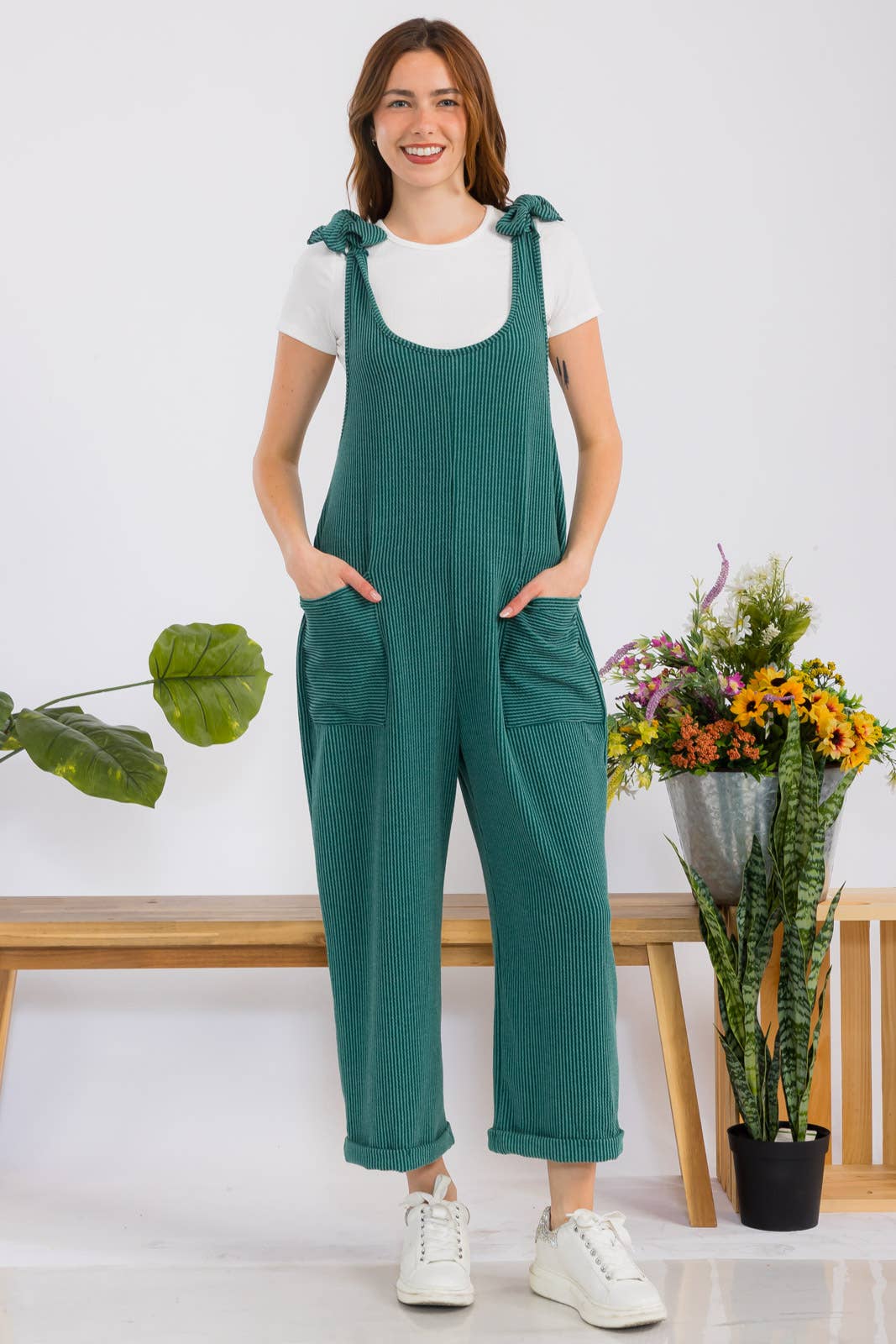 Nos encanta el nuevo mono CAPRI casual acanalado de Celeste. Este mono acanalado con cuello redondo, bolsillos y tirantes ajustables combina comodidad, estilo y practicidad, por lo que es un complemento imprescindible para cualquier armario moderno. Ya sea que asistas a una reunión informal, salgas a cenar o simplemente busques un atuendo moderno y cómodo para el día a día, este mono es lo que necesitas. La modelo mide 5 pulgadas y lleva una talla S. Los colores reales pueden variar ligeramente debido a las diferencias en la iluminación y los monitores.