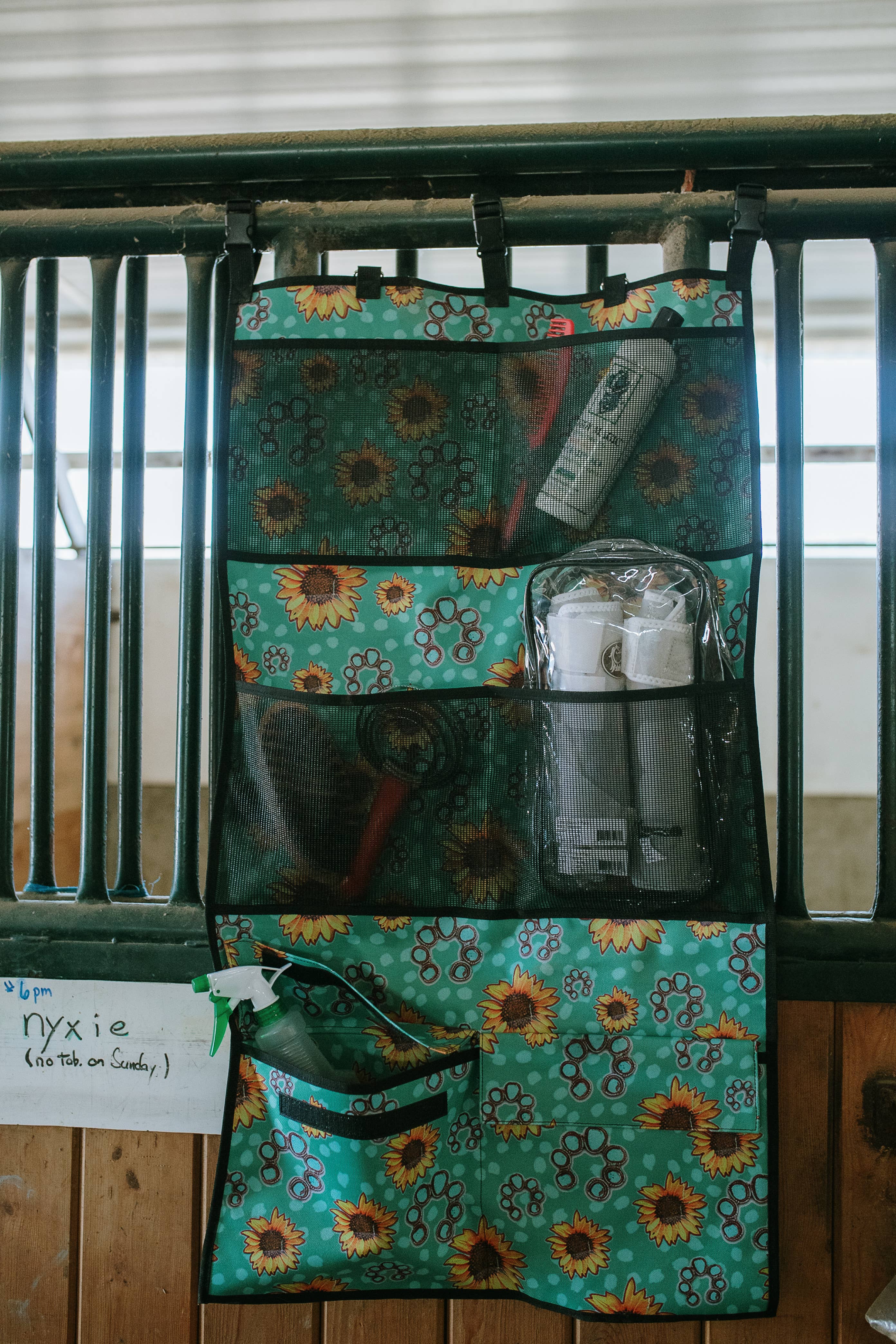Cuenta con 6 bolsillos exteriores para guardar sprays, cepillos y otros accesorios de aseo. Las bandas elásticas de nailon aseguran los objetos altos en posición vertical. Dos bolsillos laterales altos para almacenamiento adicional. En el interior, un espacio abierto para máxima capacidad. Se incluyen dos asas y una correa de hombro ajustable y removible con acolchado.