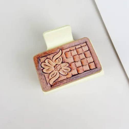 Material: cuero artificial /Resina Proceso de manipulación: hecho a mano Tamaño: 5* 4,5 cm Peso: 16,2 g Descripción: ¡Presentamos nuestra pinza de pelo cuadrada de piel estilo vaquero occidental! Disfruta del encanto salvaje del Lejano Oeste con este elegante accesorio. Confeccionados en piel de alta calidad, cada clip presenta un diseño cuadrado clásico inspirado en motivos vaqueros tradicionales. Diseñadas tanto para la moda como para la funcionalidad, estas pinzas para el pelo ofrecen un agarre seguro y mantienen el cabello en su lugar con facilidad. La construcción de cuero duradero garantiza un uso duradero, mientras que la forma cuadrada añade un toque de estilo occidental a cualquier peinado. Ya sea que vayas a un rodeo, a una fiesta de temática campestre o simplemente quieras añadir un toque rústico a tu look diario, estas pinzas para el pelo de estilo vaquero son la elección perfecta. Versátiles y elegantes, complementan una variedad de atuendos y peinados con su atractivo atemporal.