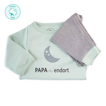 Certificado de algodón orgánico 2 piezas de manga largo/pantalones largos slim pijama conjunto con una muñeca de seguridad a juego.
