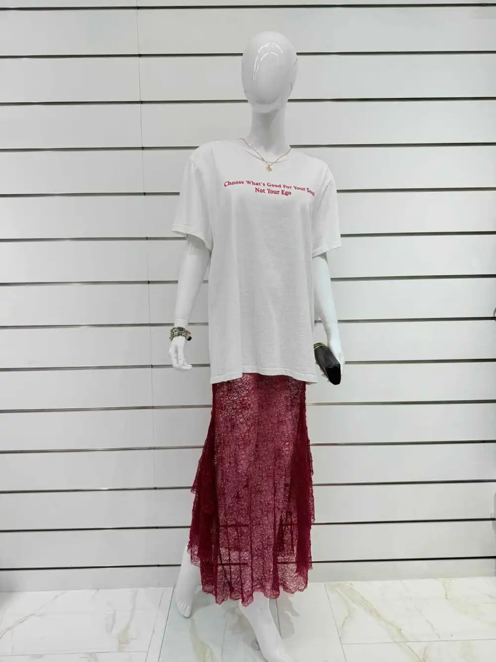 Ajuste regular Cuello redondo Detalles bordados Incluye colgante Empaquetada en bolsa fucsia con diseño de sonrisa Hecho en Italia No dude en solicitar fotos de los detalles del producto