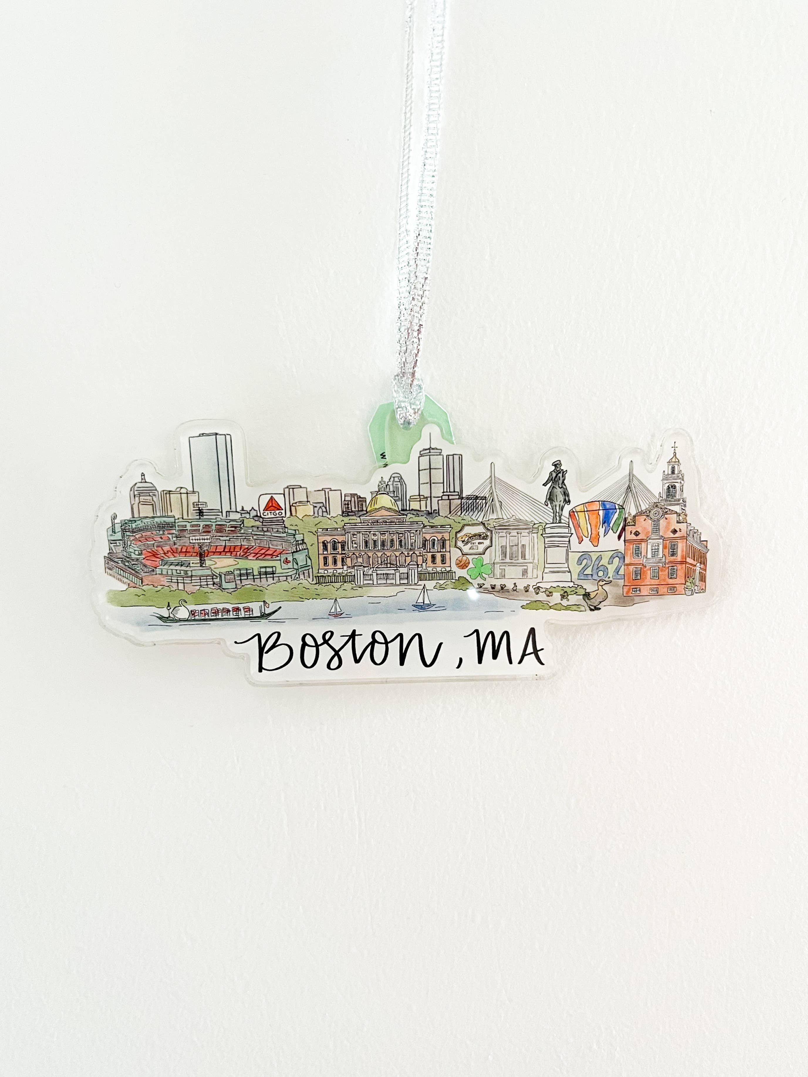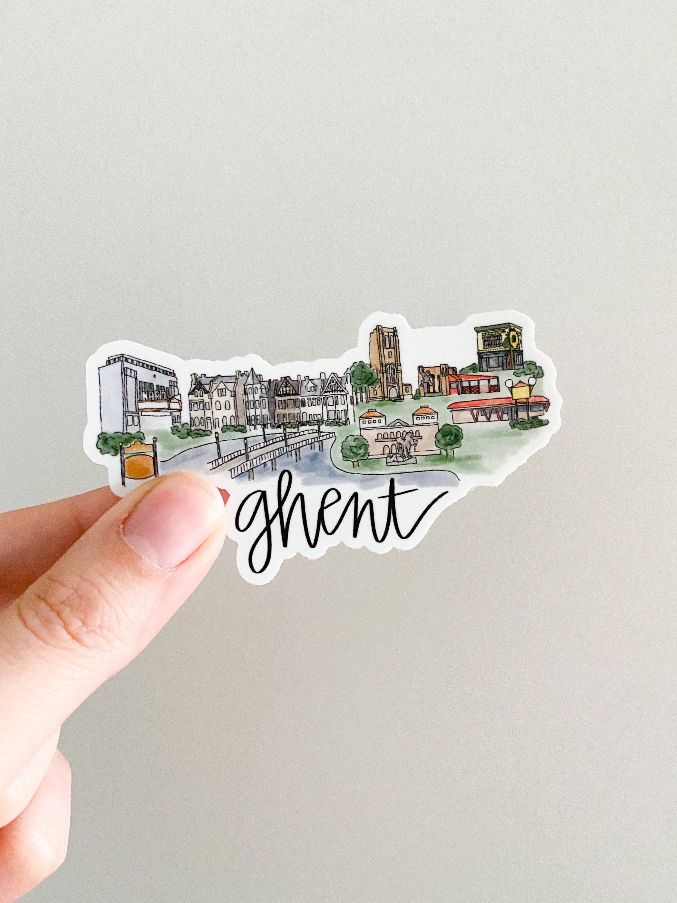 Este es un hermoso adorno acrílico de aproximadamente 4 pulgadas de largo por 2.5 pulgadas de alto. Cuenta con mi diseño del horizonte de Gante impreso en la parte posterior.