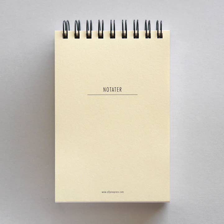 Bloc de notas grueso con espiral, hecho con una calidad de papel llamada Super Snow Bright. Es un papel de libro suave y sedoso fabricado en la última fábrica de papel que queda en Noruega, Hellefoss Paper As, en Hokksund. (125 x 188 mm, 128 hojas)