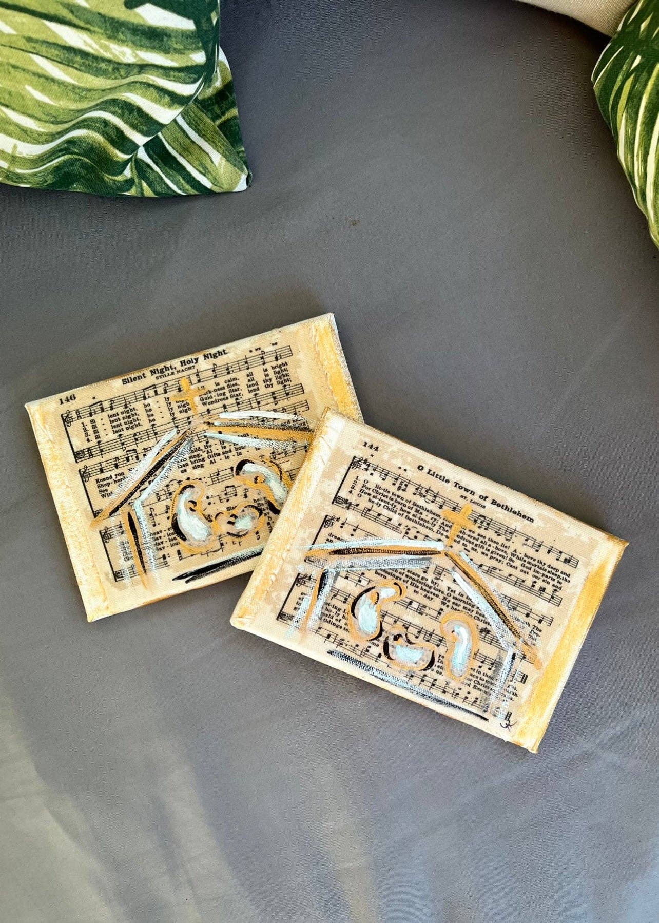 Lienzo de cruz pintada a mano 5x7 con versículo bíblico Joy to the World