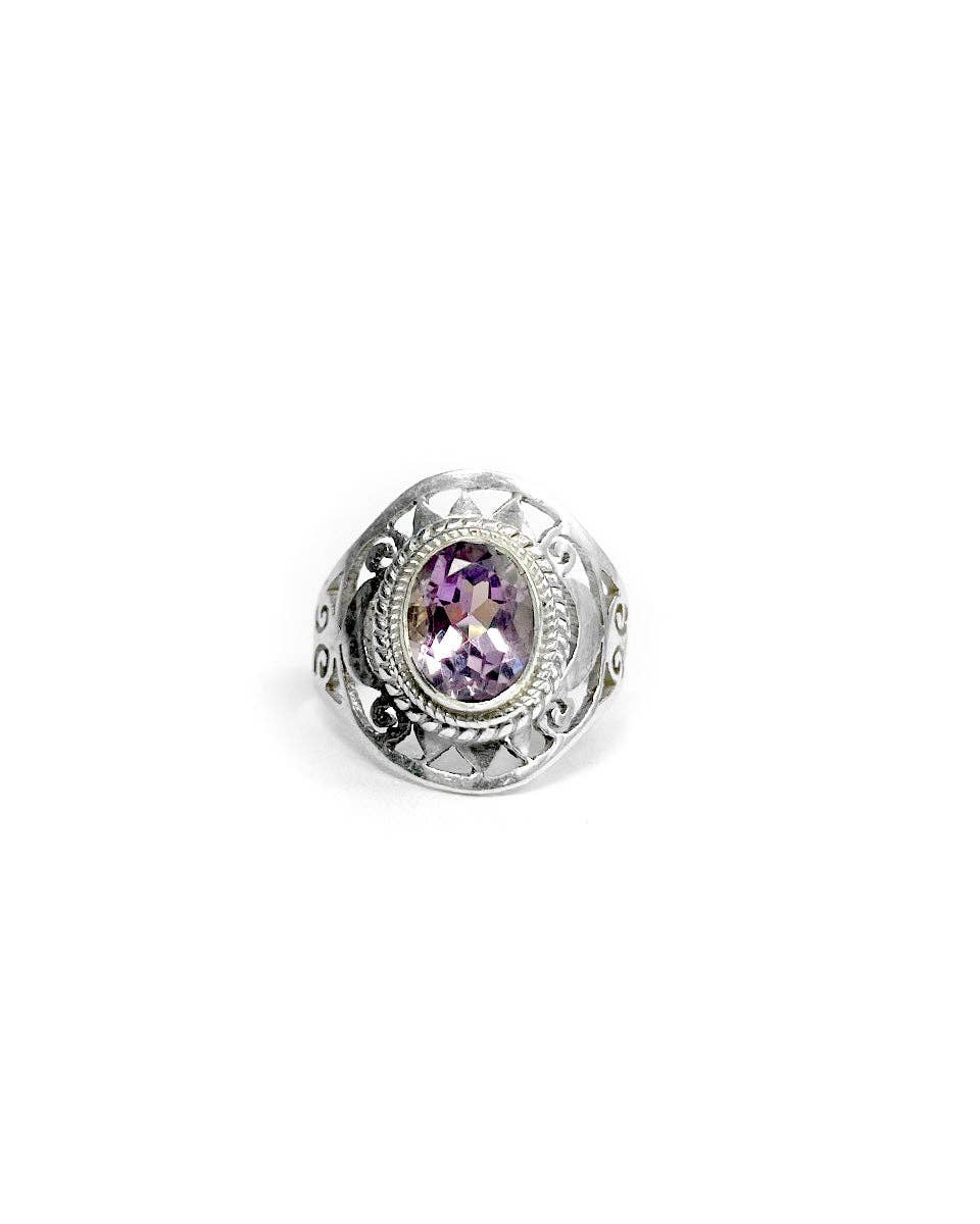 Anillo Jali con piedra, punta y banda de filigrana, plata de ley, Nepal La piedra mide aprox. 5-8mm Contáctanos para ver si tu talla de anillo está disponible.