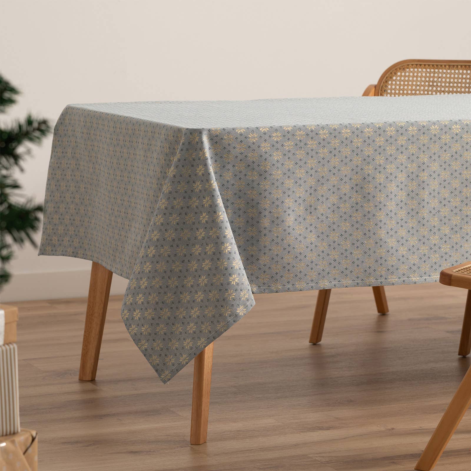 Mantel fabricado con técnica Jacquard en composición 70% algodón, 30% poliéster con tratamiento antimanchas. Gracias a las propiedades del tratamiento antimanchas, permiten que el tejido sea impermeable al agua y líquidos no grasos salvaguardando el tacto tela y la caída natural sobre la mesa. Con patrones intrínsecos, hace un suave relieve en sus diseños para dar mayor naturalidad y vitalidad al mantel. Fabricado íntegramente en España, cuenta con el certificado Oekotex Standard 100. Además tiene los laterales confeccionados para una mayor duración y resistencia. Se entrega con bolsa cierre zip reutilizable. Al contener algodón, recomendamos lavar a 30º en lavadora para evitar encogimientos. Permite plancha y secadora a temperatura suave. No utilizar lejía ni blanqueantes ni colorantes.