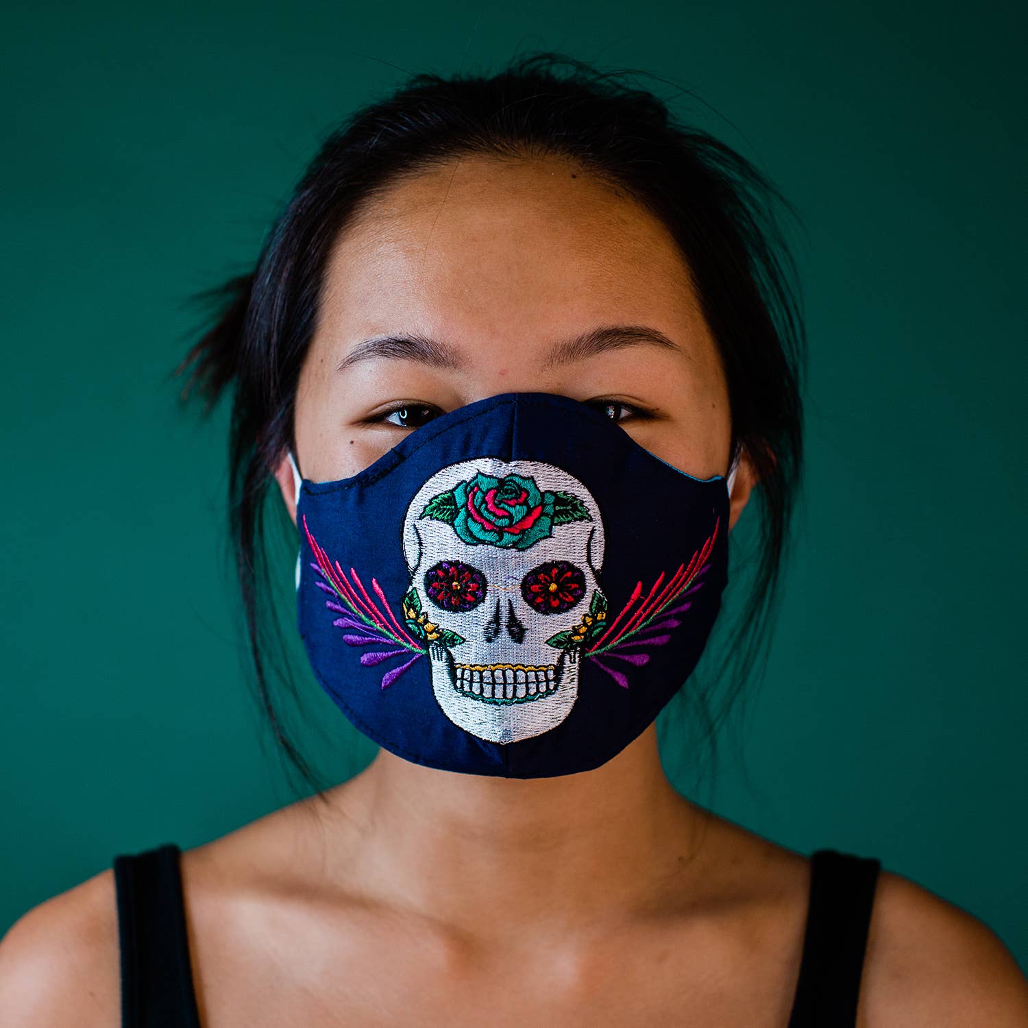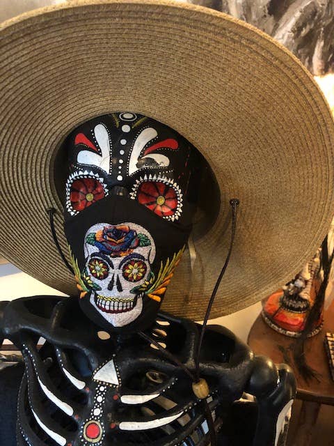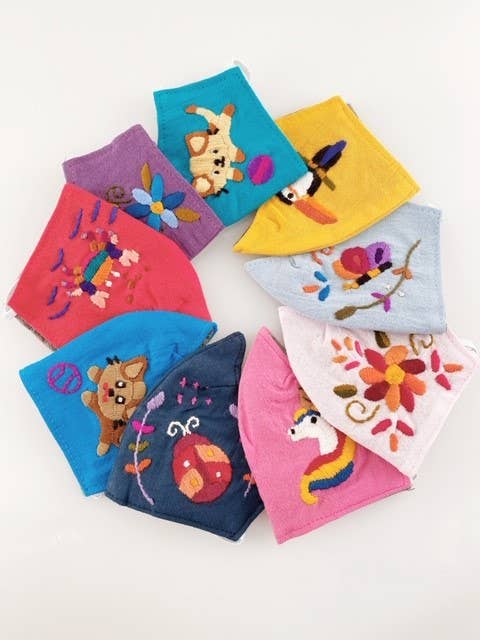 Mascarilla 100% algodón hecha en San Antonio Palopo por nuestro buen amigo Mario Pérez. Están confeccionadas con material típico de falda todavía usado por las mujeres indígenas de Guatemala. Los patrones de fondo varían de tela negra y azul oscuro con un toque de hilo brillante. Cada máscara tiene un forro de microfibra. Hecho a mano bajo principios de comercio justo en Guatemala. Se puede lavar a máquina, pero es preferible lavarse a mano. Estas son máscaras de grado no médico. 50% DE DESCUENTO EN VENTA- originalmente $4.50 al por mayor.