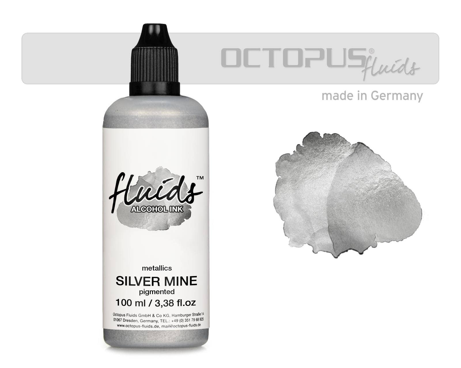 Tinta alcohol de 30 ml en color dorado metálico Gold Rush, ideal para pintura fluida, resina epoxi, arte en resina y proyectos de técnicas mixtas. Descubre tu creatividad y déjate contagiar por la tendencia de la pintura fluida. Incluso como principiante, puedes lograr resultados impresionantes con nuestras tintas alcohol. Crea hermosos degradados de color, efectos abstractos y formas sorprendentes una y otra vez con las brillantes tintas alcohol Octopus Fluids. Y si ya eres un profesional del Alcohol Ink, nuestras tintas te impresionarán por su fluidez especial y el interesante sangrado entre colores. La tinta alcohol Octopus Fluids en color Gold Rush es una pintura a base de alcohol metálica y de secado rápido, desarrollada especialmente para técnicas de pintura fluida.