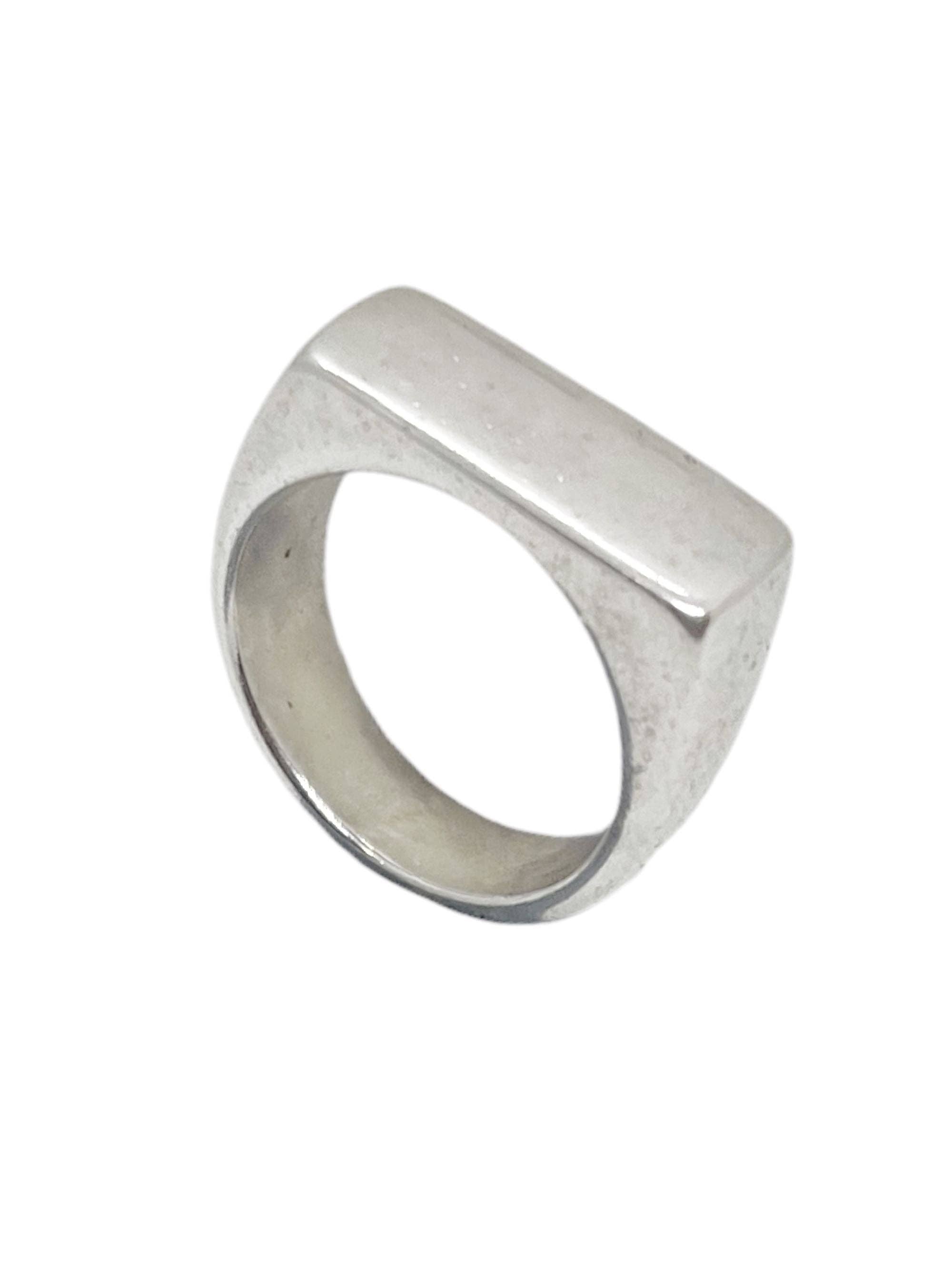Los anillos de placa de identificación Snash Jewelry están disponibles en tamaños 5-9. Los anillos de latón no están recubiertos, lo que permite volver a pulir el cliente. Evitar el agua, lociones pesadas, cloro, etc., prolongará el brillo pulido original. Limpiar el anillo con un paño para pulir joyas restaurará el brillo si se produce deslustre.