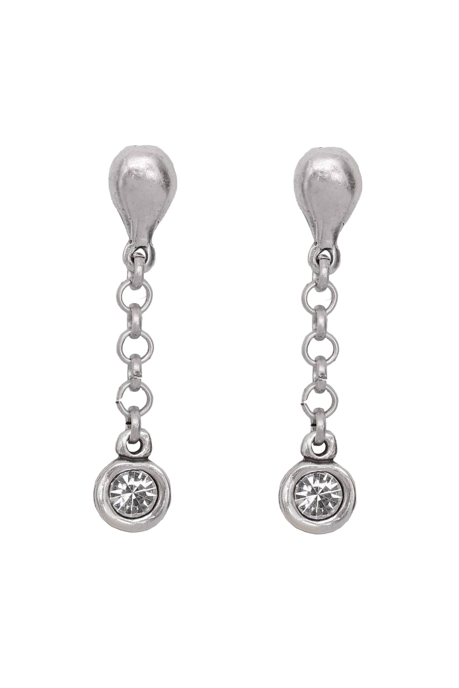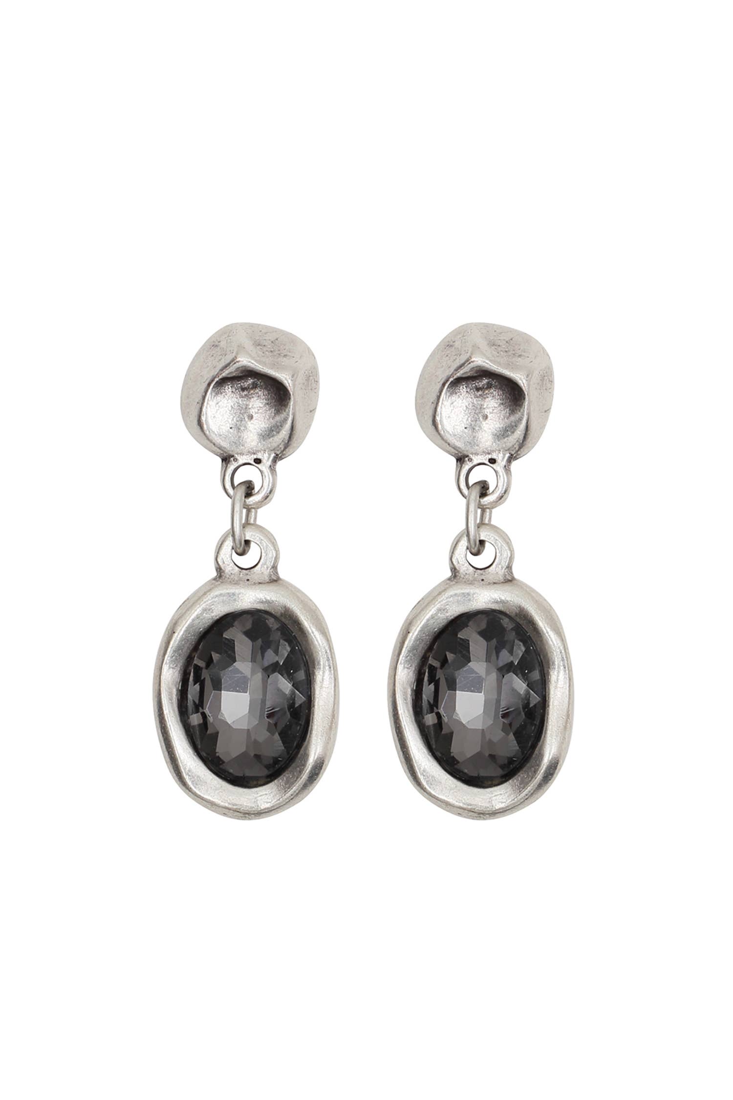 Pendientes de peltre bañados en plata con cristales hechos a mano.