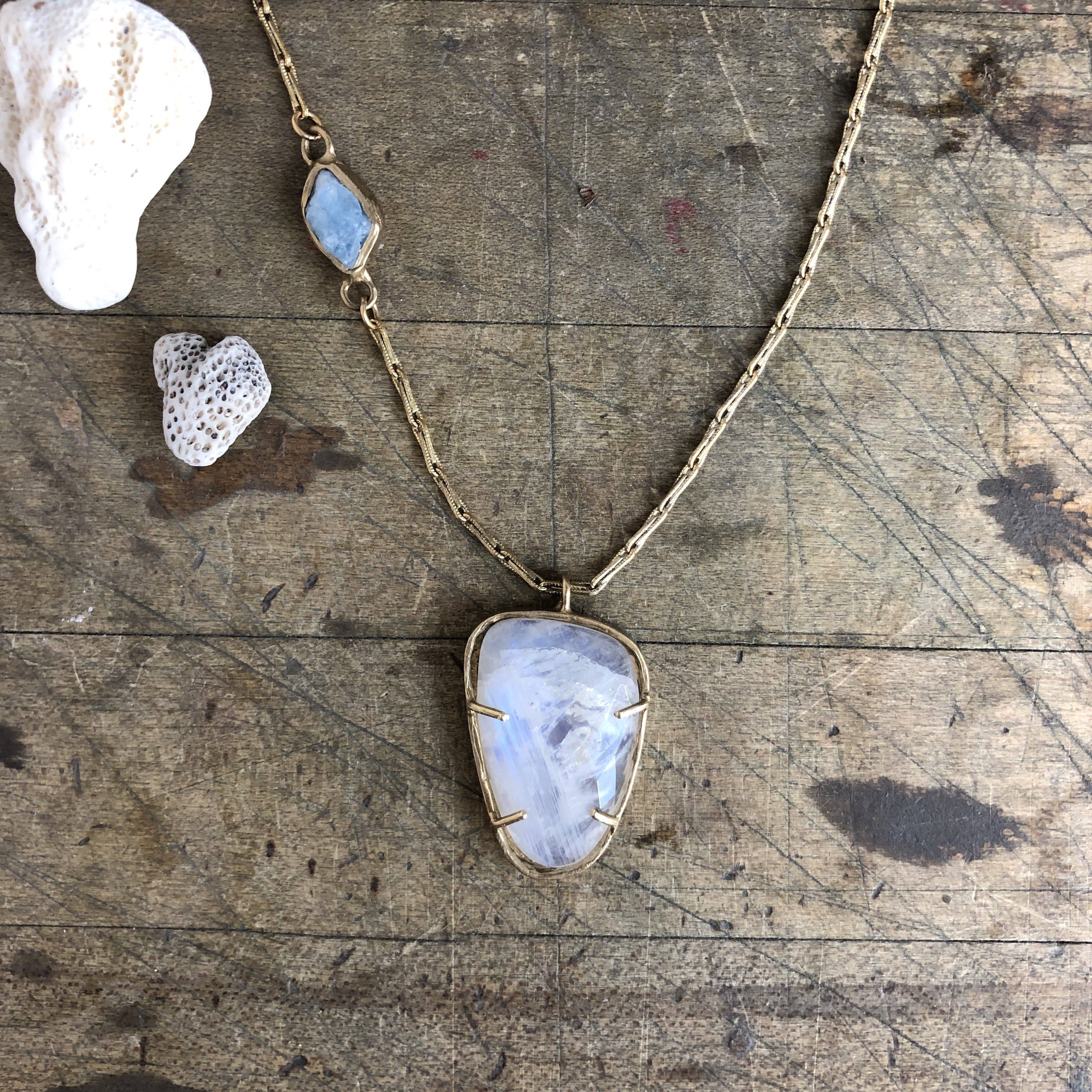 Inspiradas en las alas iridiscentes de una mariposa en vuelo, estas piedras lunares blancas lechosas cortadas en rosa tienen el destello azul-lavanda más mágico. Simplemente engarzado en latón con pendientes franceses chapados en oro hechos a mano. Longitud 1" Anchura 5/8" Esta pieza está hecha a mano bajo pedido. Cada pieza puede variar ligeramente debido a la singularidad de las piedras. Todo el metal está libre de níquel.
