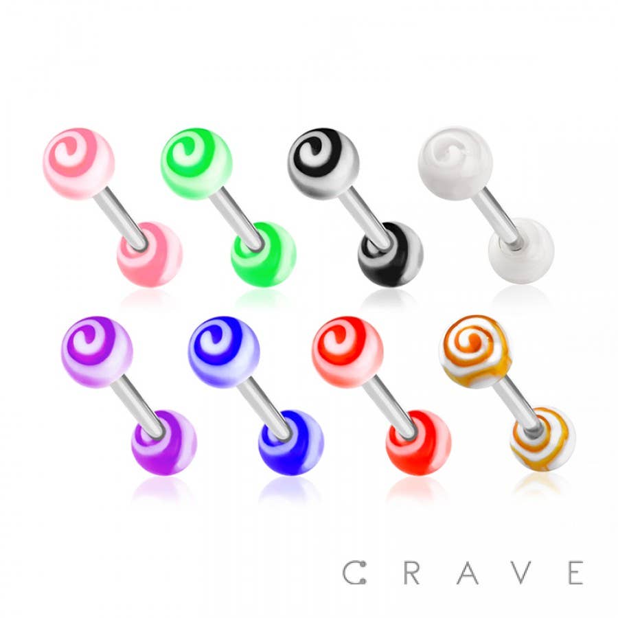 BARRA DE ACERO QUIRÚRGICO 316L CON BOLA ACRÍLICA RAYADA AL POR MAYOR