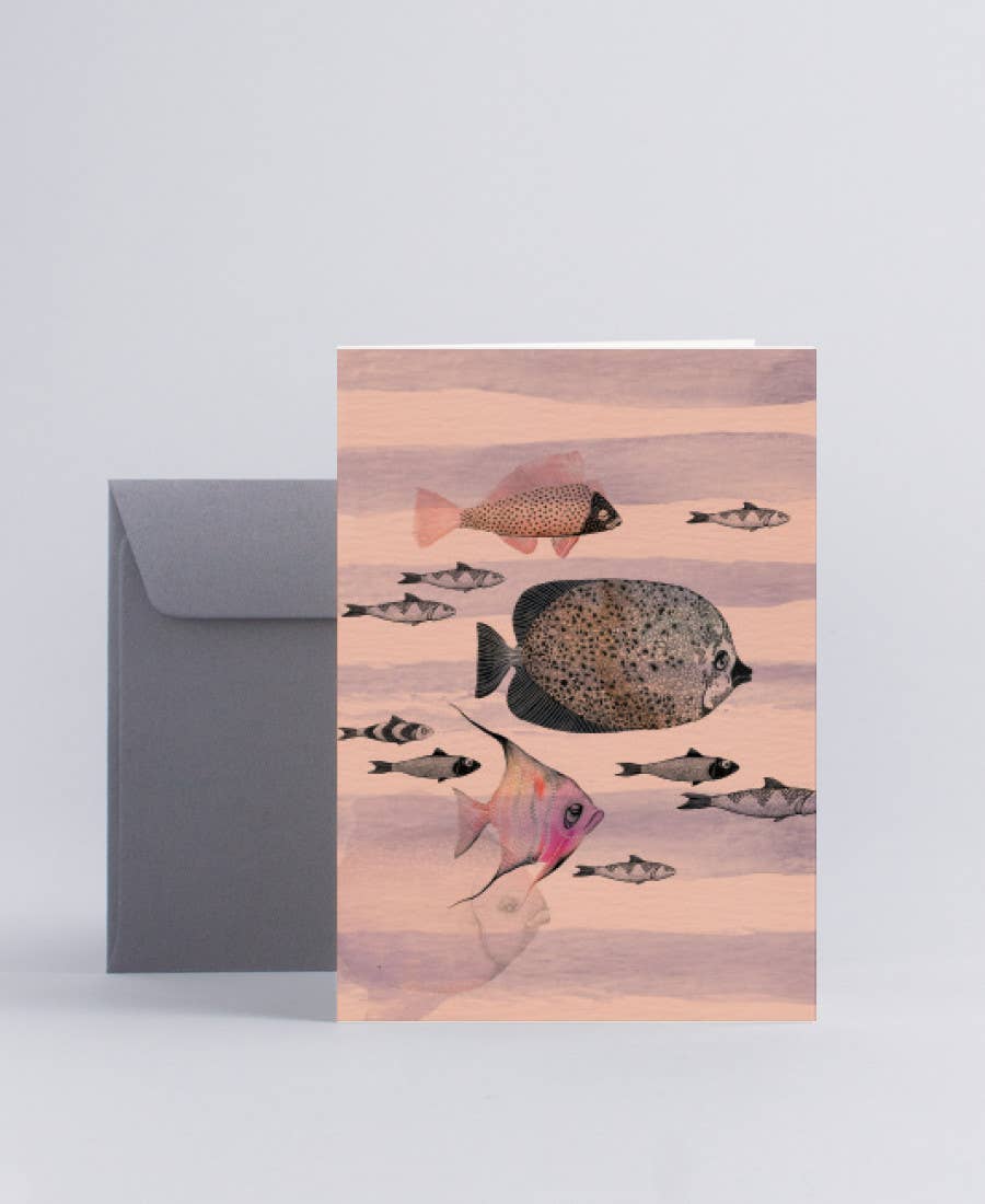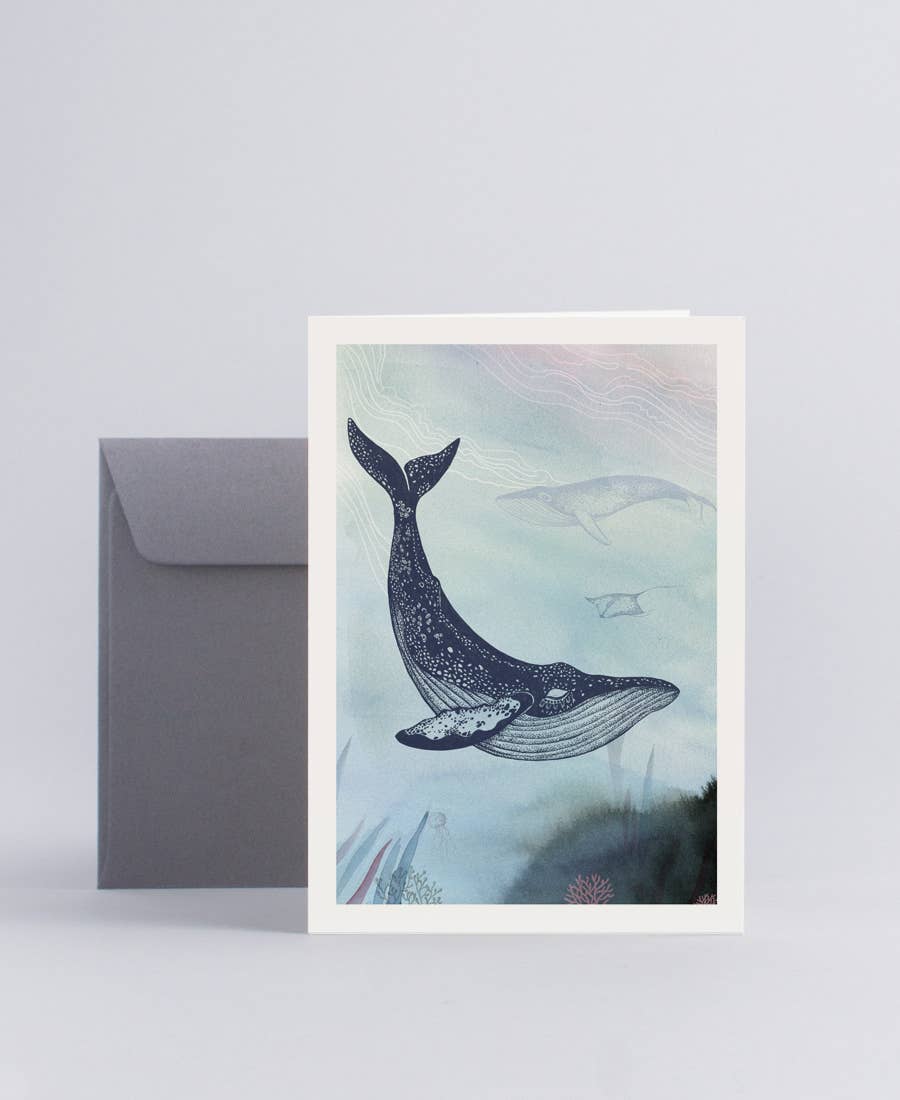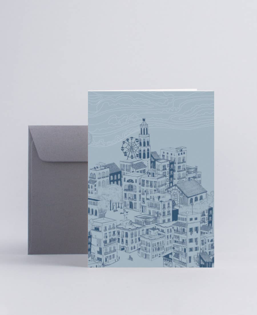 Tarjeta de doble cara impresa en papel blanco natural sin recubrimiento de 300 gramos. Incluye un sobre gris y viene en una bolsa de celofán. Medidas A6: 10,5 x 14,8 cm.