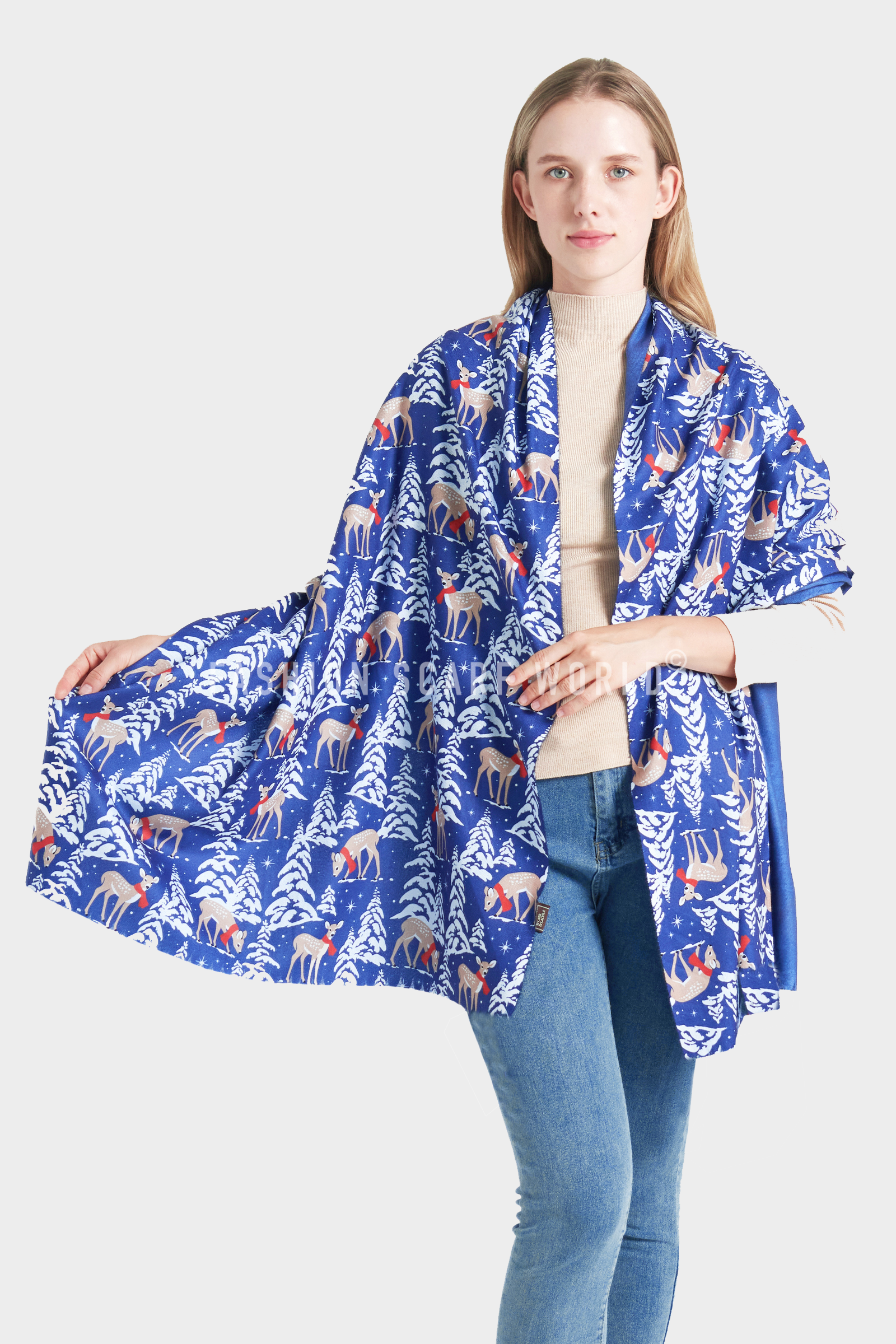 Bufanda reversible con borlas y estampado de conejo / liebre al por mayor