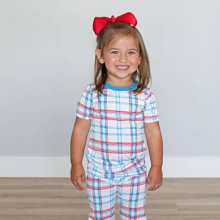 * Diseño de acuarela a cuadros azul/rojo * Hecho de tela suave y elástica, 95% viscosa de bambú, 5% elastano * Doble cremallera para cambiar pañales fácilmente accesibles * Sin etiquetas para pieles delicadas * Opción de calzado plegable para ropa de dormir * Manoplas plegables para evitar arañazos * Para la seguridad del niño, la ropa de dormir debe quedar ajustada * Es grande, talla más pequeña para un ajuste perfecto