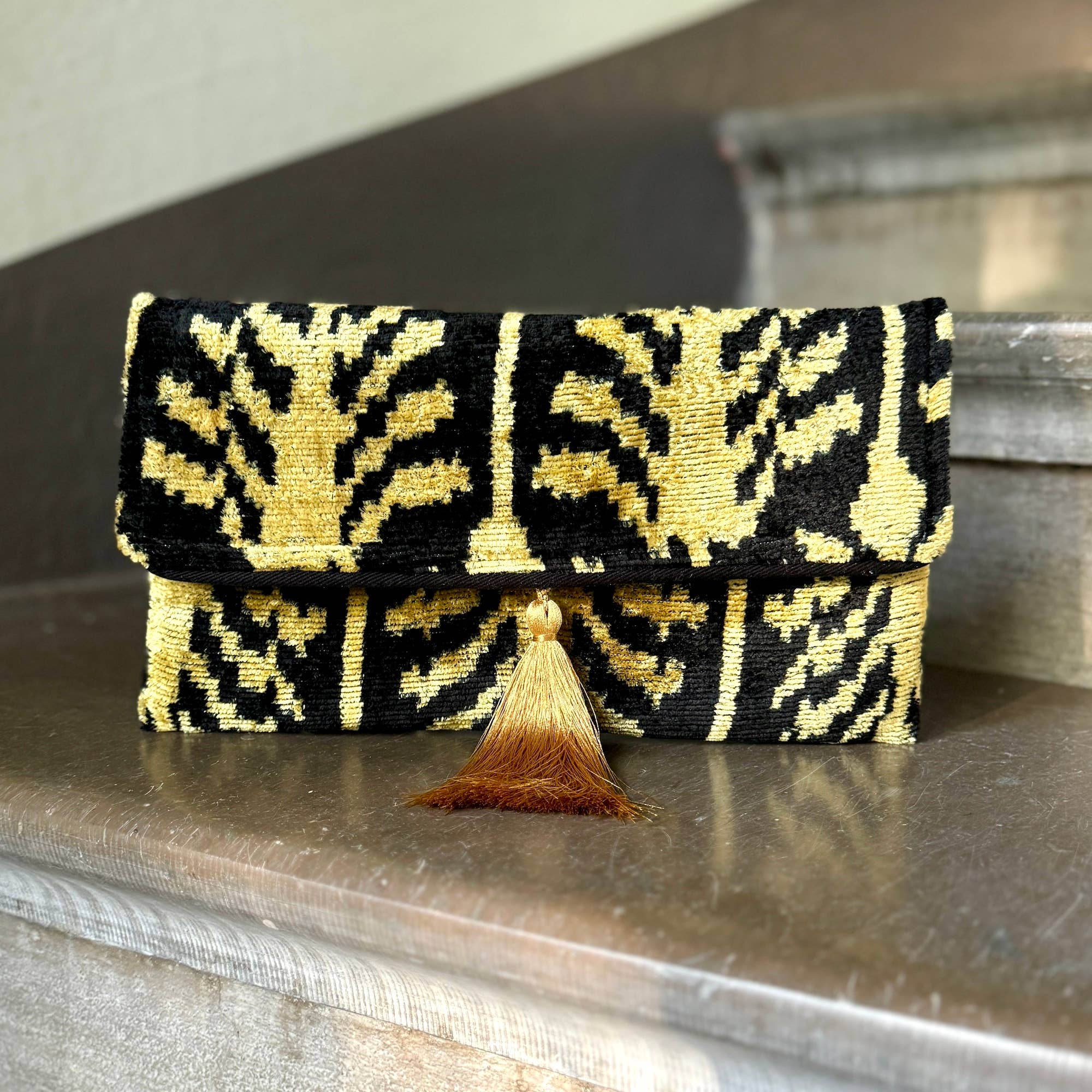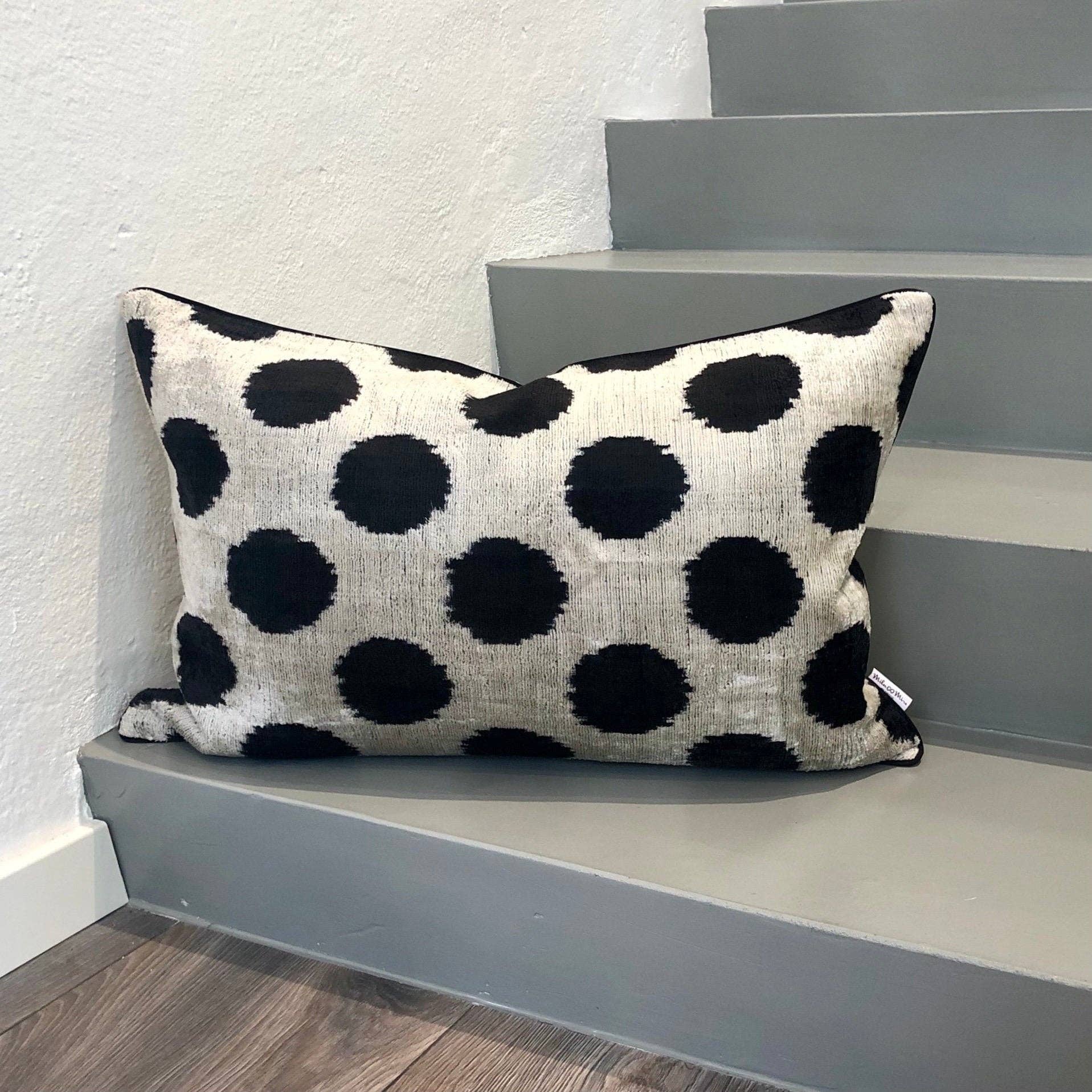 Mila∞Miro por Emelie · Funda de cojín lujosa de tela ikat tejida a mano · Hecha de terciopelo de seda 100% · También disponible en rojo, azul, negro · Acentuada con ribete · La parte trasera es de lino con una cremallera oculta Tamaño ±: 40x40 cm (16"x16"), 40x60 cm (16"x24"), 30x50 cm (12"x20”) Tenga en cuenta: - El relleno del cojín no está incluido. - Solo limpieza en seco. - Dependiendo de la pantalla de su dispositivo, los colores en la realidad pueden diferir un poco de las imágenes del producto mostradas. - Ikat es una tela exquisita, cada pieza es única y también puede contener pequeñas imperfecciones; el encanto de un producto hecho a mano. - El paquete se envía de manera exprés. Pueden aplicarse derechos de aduana. - Los productos están sujetos a disponibilidad.