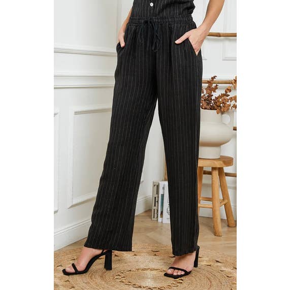 Pantalones de pierna ancha con pretina fruncida elástica y bolsillo VP81443B
