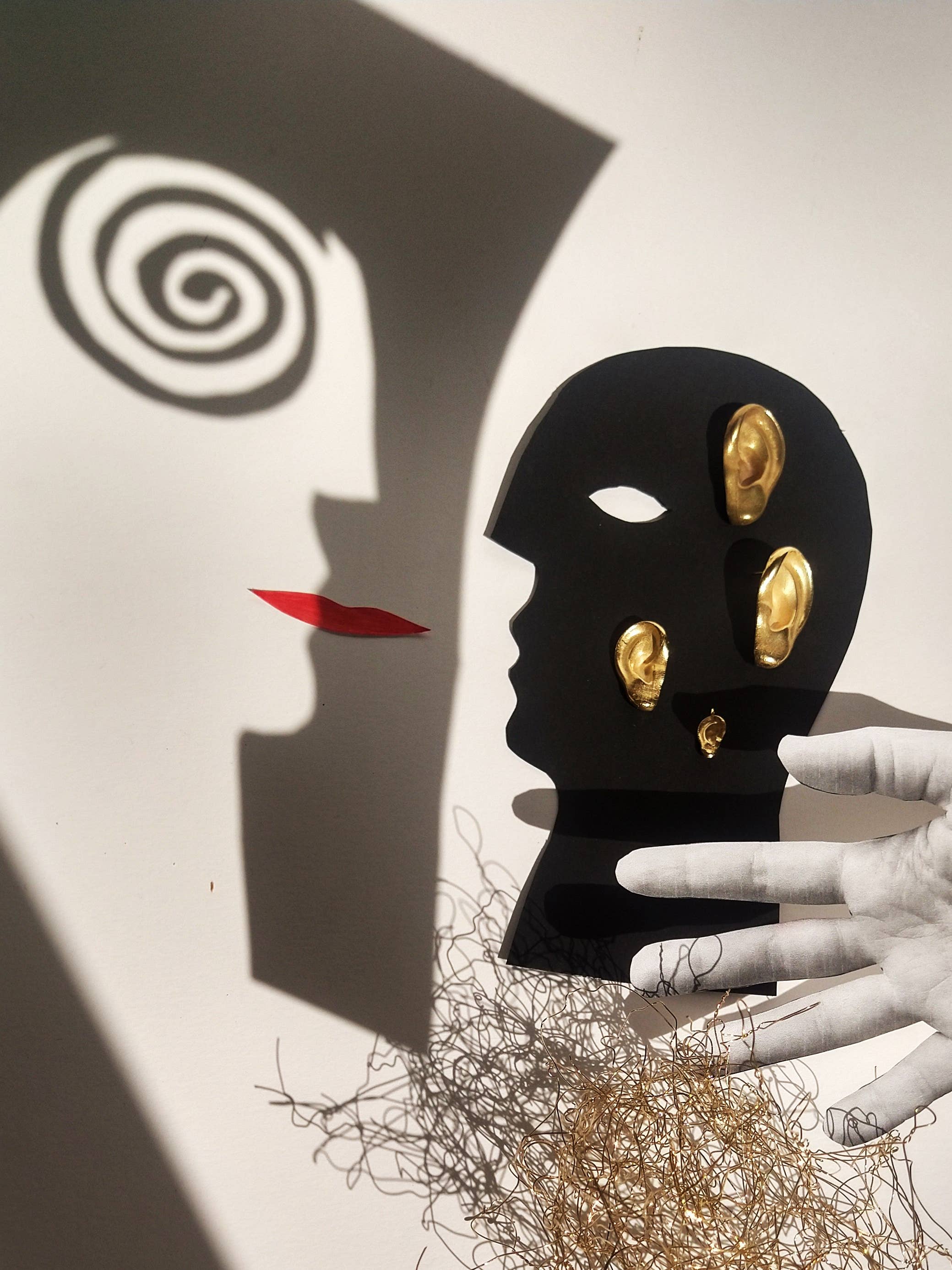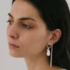 Pendientes Mira en dos tonos. Material: pendientes de plata de ley de 2 mm y cadena y aro de latón bañado en oro. Los pendientes Mira pueden usarse con o sin los accesorios; la cadena y el aro son removibles. Son ligeros y fáciles de llevar. Todos los diseños de sew a song son originales y hechos a mano en el estudio en Barcelona (España). El baño de oro se realiza en talleres locales de Barcelona para garantizar la calidad.