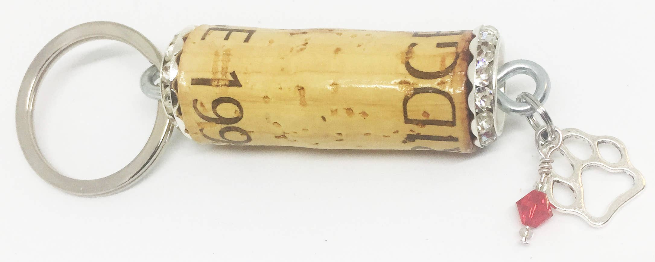 Llavero fabricado con corcho barnizado, herrajes de diseño de strass y colgante de camper con cristal verde. Gran idea de regalo para los amantes del vino. Ligero y fácil de encontrar en un bolso o bolso. Pantalla ofrecida por $22.00