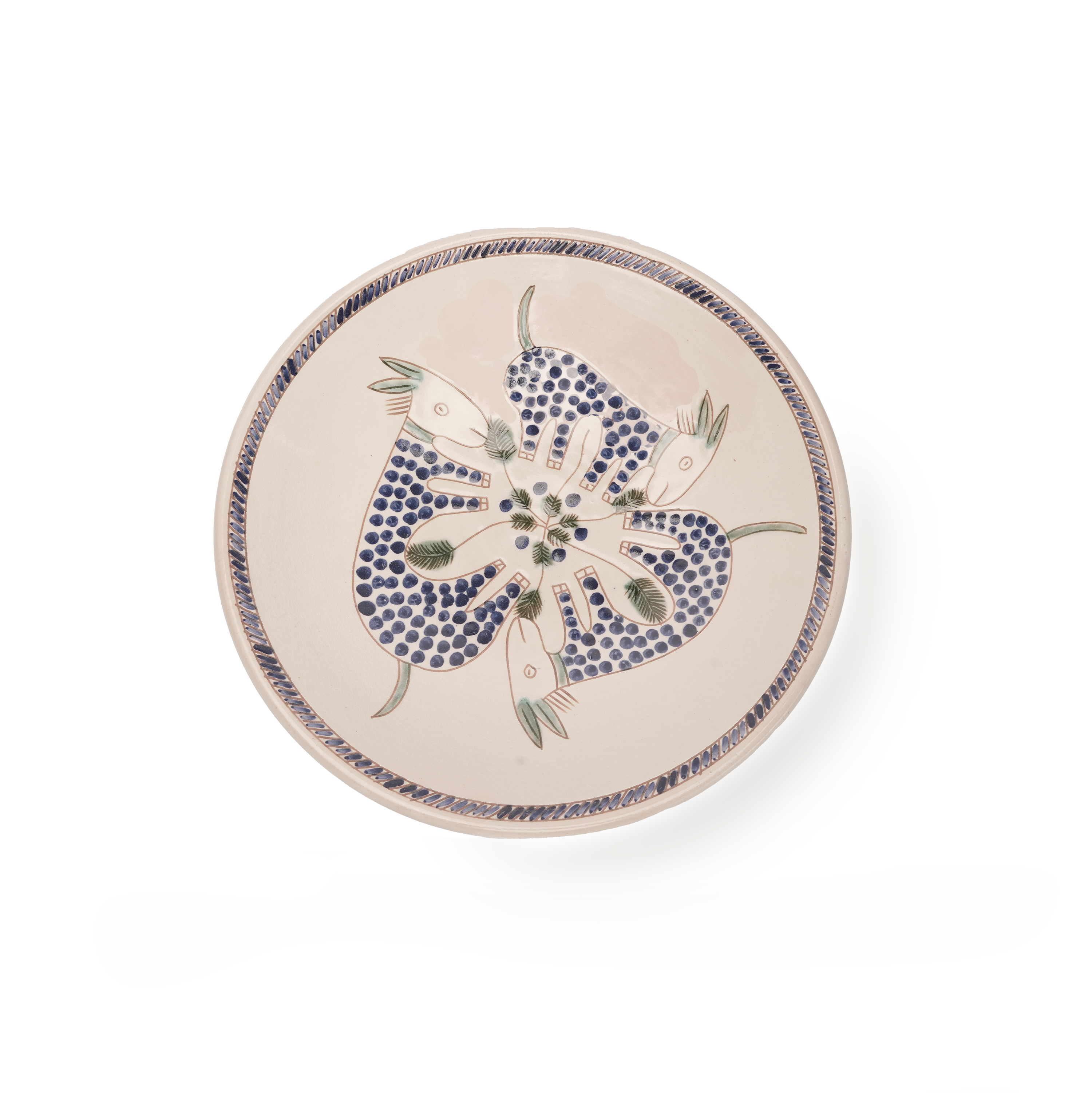 MATERIAL - Arcilla esmaltada natural sin plomo - Medidas: diámetro: 3,14 pulgadas, altura: 5,1 pulgadas - Todos los productos de Kiliim están hechos a mano, lo que hace que cada producto sea único. Se aceptan ligeras variaciones e imperfecciones. CUIDAR - Lavar a mano con agua y jabón - Apto para lavavajillas HISTORIA DEL PRODUCTO Densa de buganvillas en flor, palmeras y tejados abovedados de adobe, Túnez es un pintoresco pueblo que se encuentra entre el lago Qaroun y las dunas desérticas del oasis de Fayoum. En la década de 1980, la artista cerámica suiza Evelyn Porret introdujo a los niños del pueblo en la artesanía cuando fundó una escuela de cerámica. Al utilizar arcilla de las orillas del Nilo de Asuán, sus graduados se han convertido en los maestros alfareros de Túnez que dan al pueblo y a su cerámica una estética y un estilo únicos, adornando las piezas con motivos primitivos de la flora y la fauna de su entorno; una identidad que no se puede encontrar en ningún otro lugar del mundo.