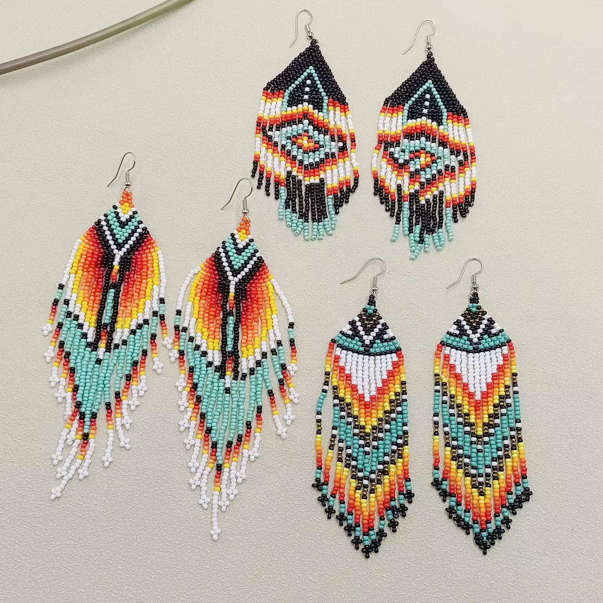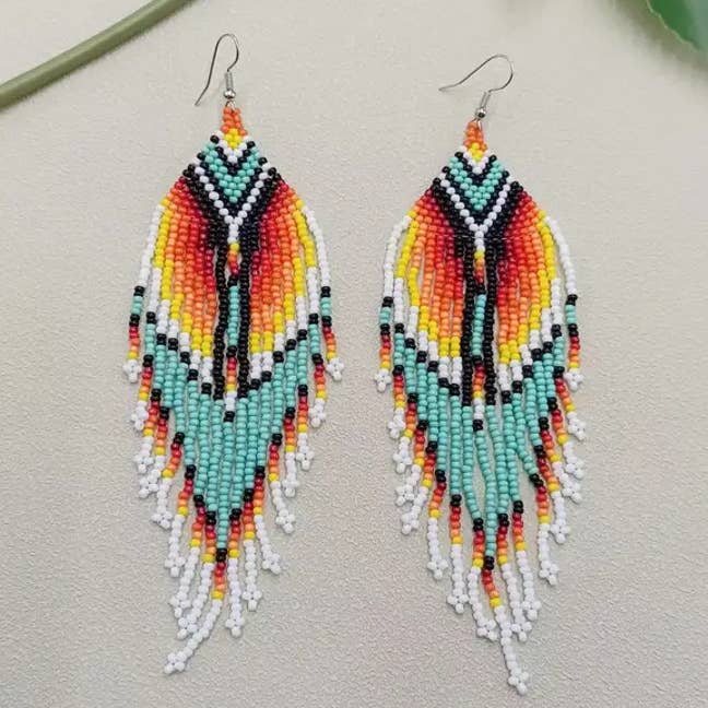 Pendientes largos con flecos y cuentas de arcoíris de estilo bohemio - BJ/SB al por mayor