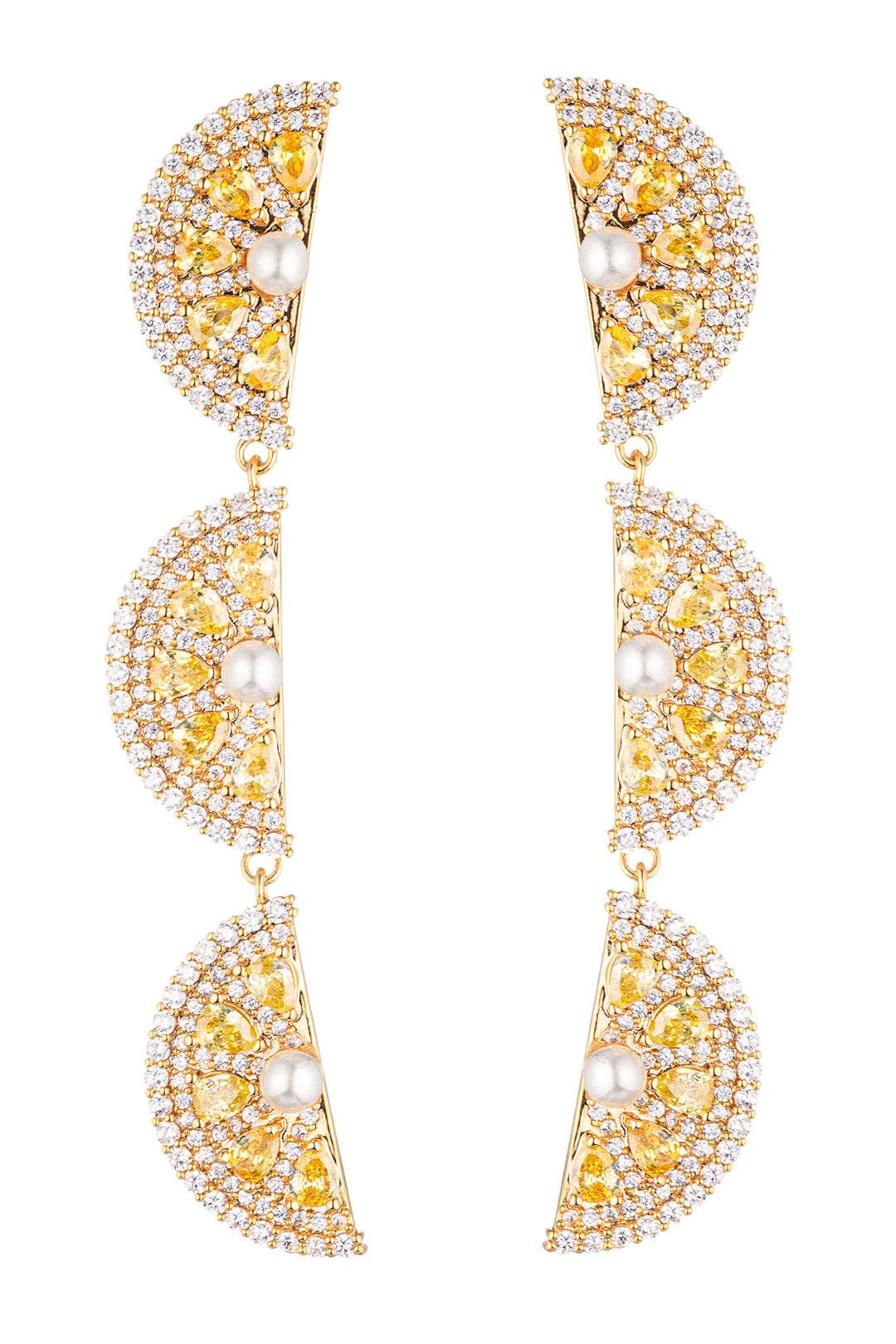 ¡Se acerca la primavera y estamos cogiendo fiebre con estos bonitos pendientes colgantes de lima! Decorados con cristales de circonitas verdes engastados en latón bañado en oro de 18 quilates, estos colgantes de color lima cuentan con una lima cortada entera y semicortada que cuelga elegantemente de la oreja. ¡Combina estos aretes de oro con nuestras otras joyas de inspiración cítrica para completar tu nuevo conjunto de joyas!