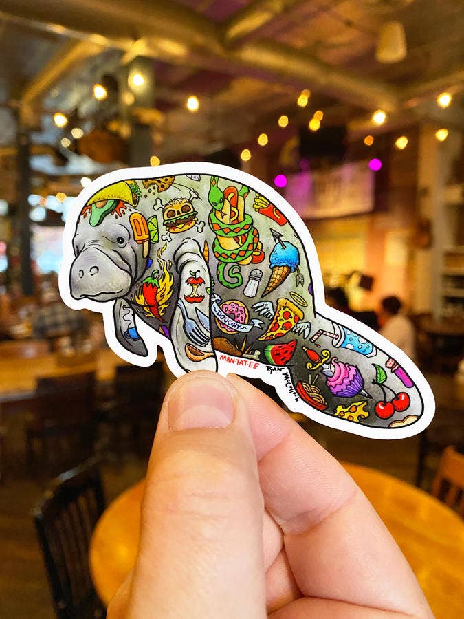 ¡Mi manatí más duro hasta ahora! Todas mis pegatinas de vinilo de primera calidad son duraderas, impermeables y están protegidas contra los rayos UV. Estas pegatinas no se imprimen en una impresora doméstica, son impresas por empresas de impresión profesionales. Arte creado por mí, Ryan McCulloch etiquetas: calcomanías impermeables, animales divertidos, vida silvestre, humor, regalos únicos, criaturas lindas, animales gastronómicos, amantes de la comida, mamífero marino, everglades de Florida, vida pantanosa, animales de agua dulce, vaca marina, sirenia, costa del golfo, salón de tatuajes vintage, rock and roll, piercings, grunge, anarquía, anarquista