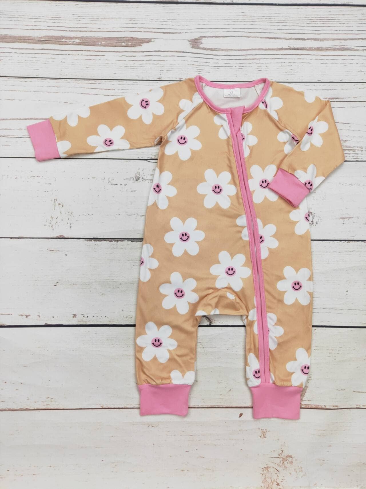 Pijama con Cremallera y Lazo Rosa Bebé