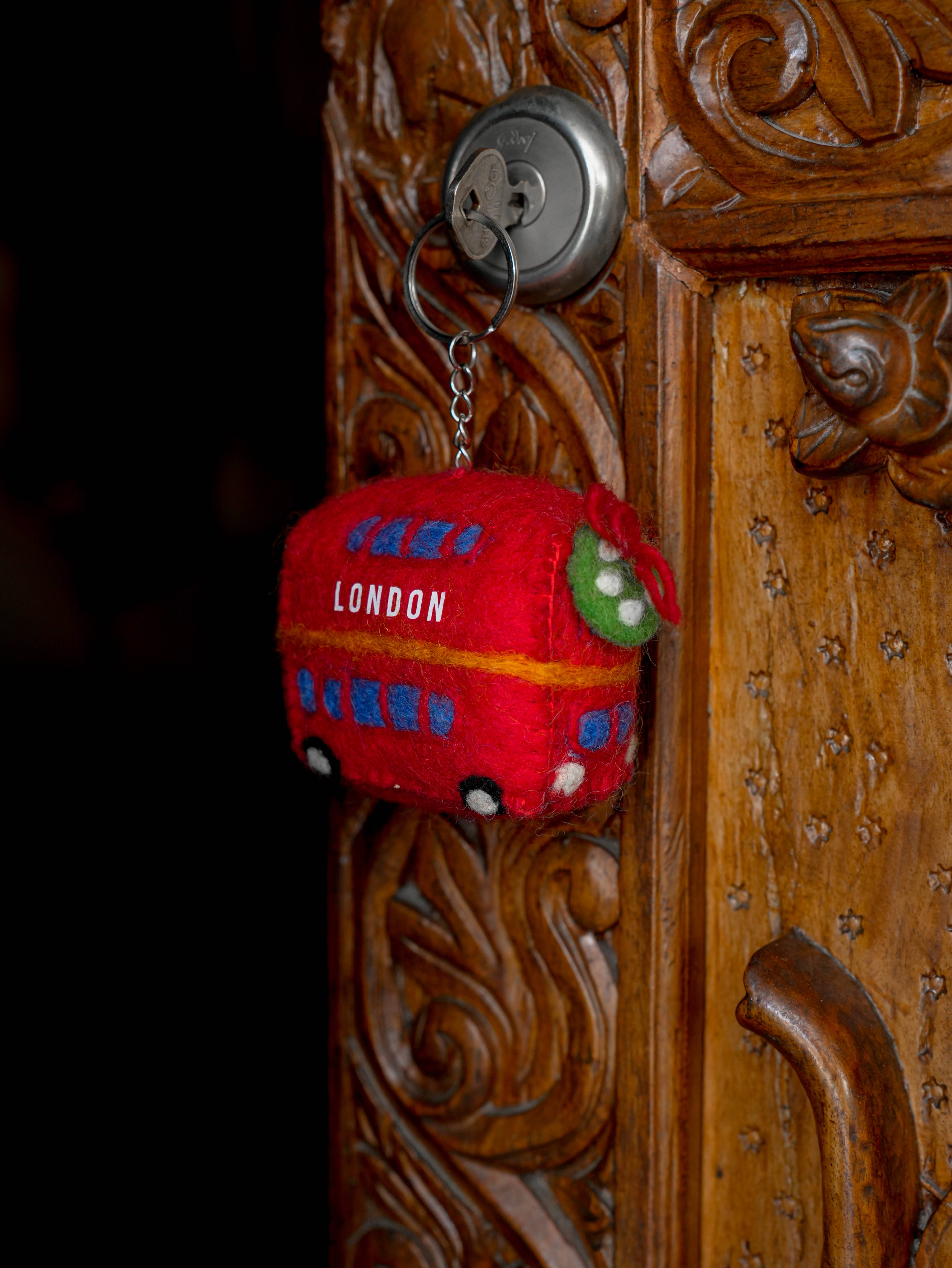 Llavero afieltrado, Cabina telefónica, Hecho a mano, 100% lana al por mayor