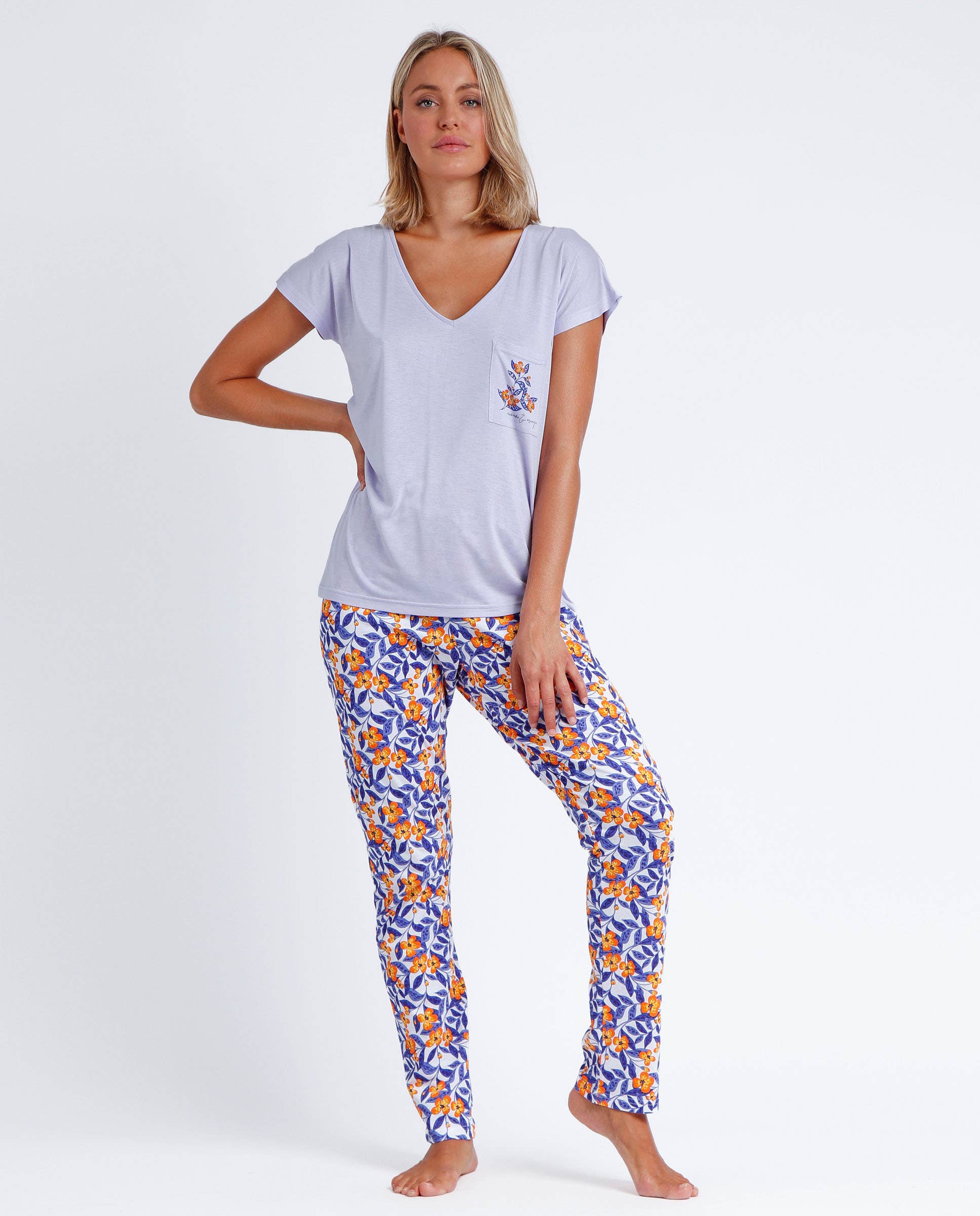 ADMAS GARDEN Pijama Manga Corta Mauve & Orange para Mujer<br><br>* Pijama de punto de algodón, de manga corta, con cuello pico y pantalón largo.<br>* Camiseta de punto liso, de color malva, con dibujo estampado, personalizada de la marca Admas.<br>* Pantalón de punto estampado con cinturilla ajustable.<br>* Tejido suave al tacto.<br>* Diseño exclusivo de Admas realizado por Aznar Innova.<br><br>CÓMO CUIDARME<br>Para obtener mejores resultados, lavar a máquina según las instrucciones de la etiqueta<br>Lavar a máquina máximo 30 grados<br>No usar lejía <br>Lavar y planchar del revés<br><br>SOBRE MI<br>Camiseta: 100% viscosa<br>Pantalón: 50% algodón, 50% viscosa