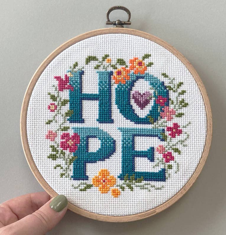 Hope - Kit de punto de cruz con estampado floral de cuatro letras