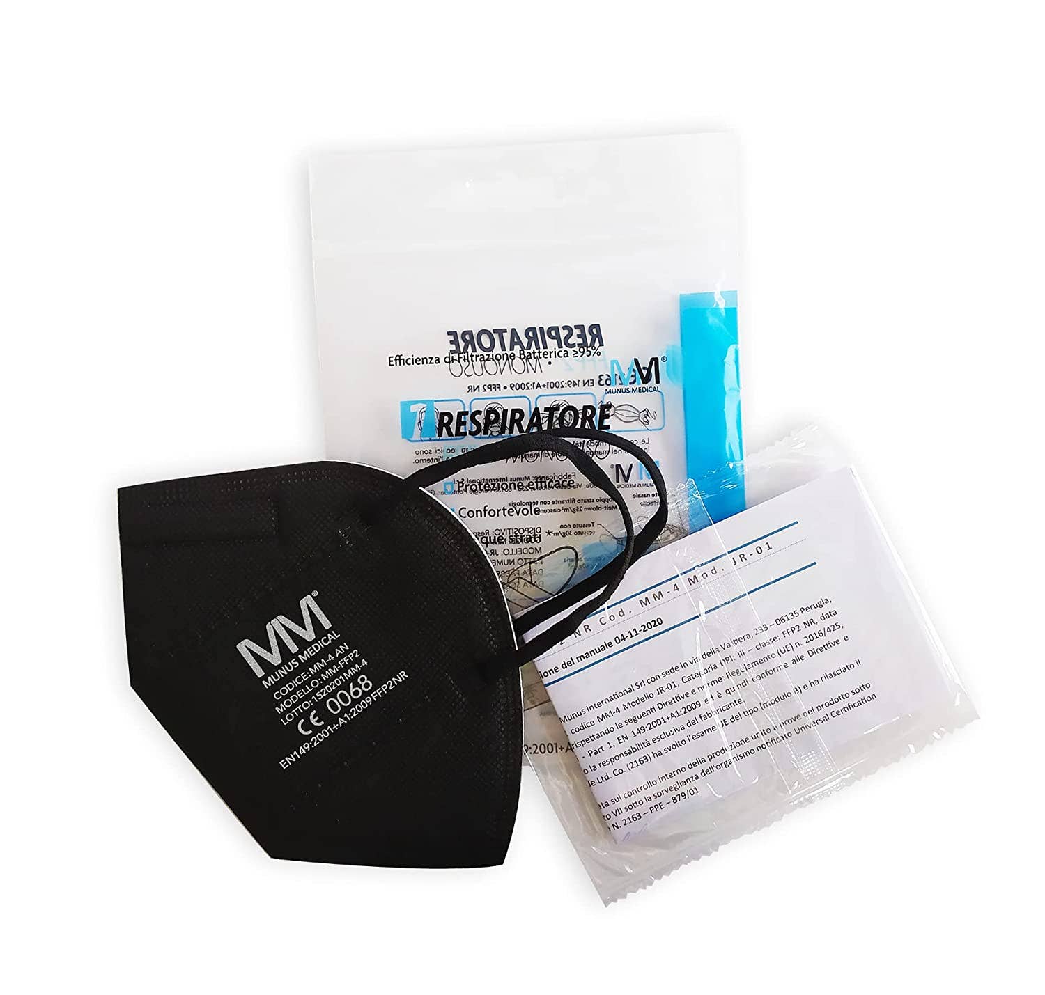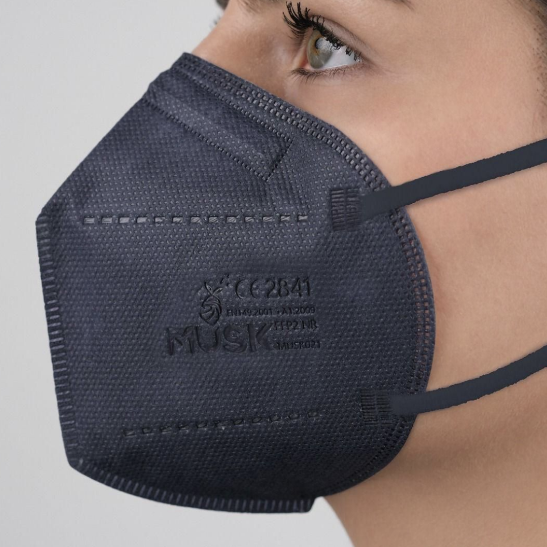 MÁSCARAS DE FILTRO DE VALOR Y SEGURIDAD FFP2 CON BANDAS PARA LOS OÍDOS • Máscara de filtro FFP2 sin válvula • Idiomas: GB, FR, IT, ES, PT • Color: negro • Pack de 20 Máscara de filtro FFP2 de cinco capas para protegerse eficazmente a sí mismo y a otros. Cumple los requisitos FFP2 de la norma EN 149:2001 +A 1:2009 y los requisitos del EPI del Reglamento de la UE 2016/425. - Con su diseño ergonómico, se adhiere bien a la cara - tela no tejida no irritante en el interior, suave y agradable al tacto - almohadilla nasal ajustable - bandas para los oídos flexibles y extensibles, que no causan dolor incluso si la máscara se usa durante mucho tiempo - se pliega en dos para facilitar el almacenamiento - cada máscara individual se empaqueta en una bolsa transparente Características técnicas Inhalación: 30 l/min% = 0,7 Inhalación: 95 l/min% = 2,4 Exhalación: 160 l/min% = 3,0 Penetración de medios filtrantes: = 6% Tamaño de máscara abierta: 21 x 15,5 cm máscara plegada: 10,5 x 15,5 cm